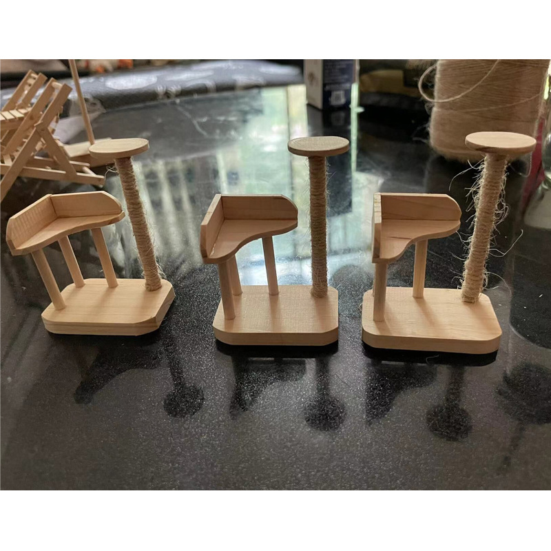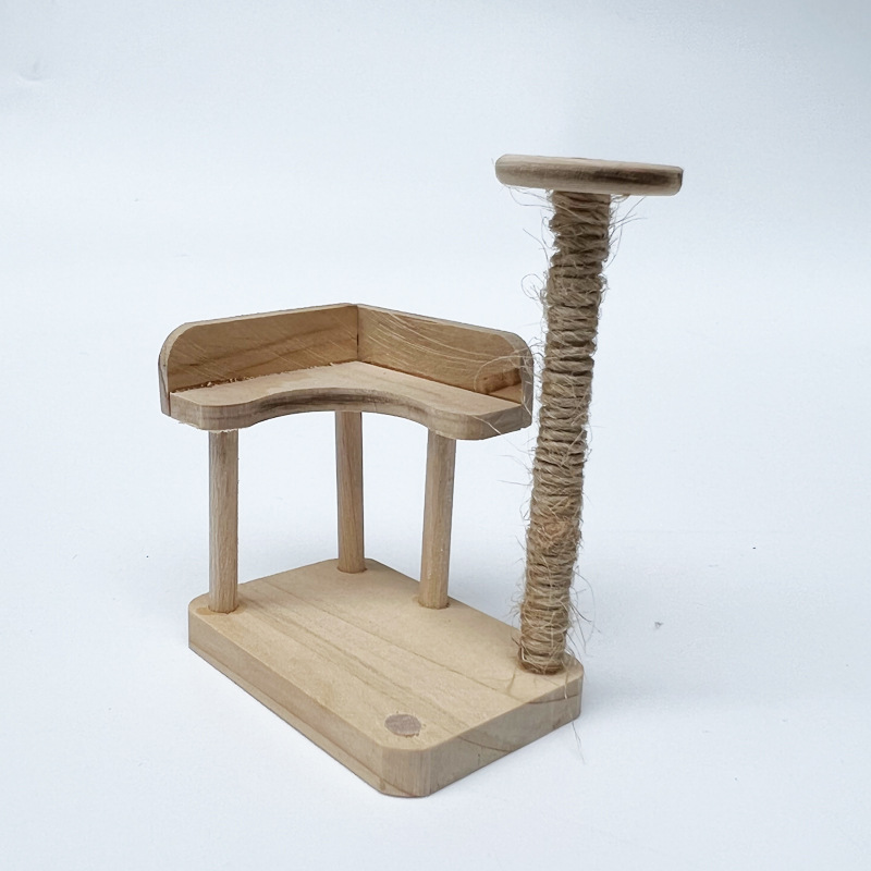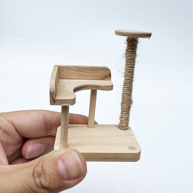 实木手工制作,白色纸盒包装。猫咪场景搭配,迷你微缩玩具。