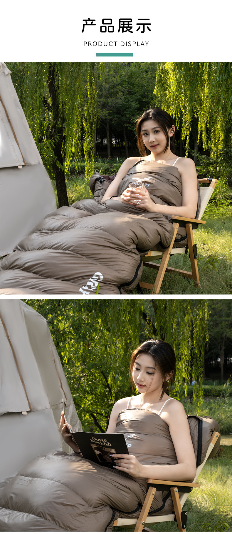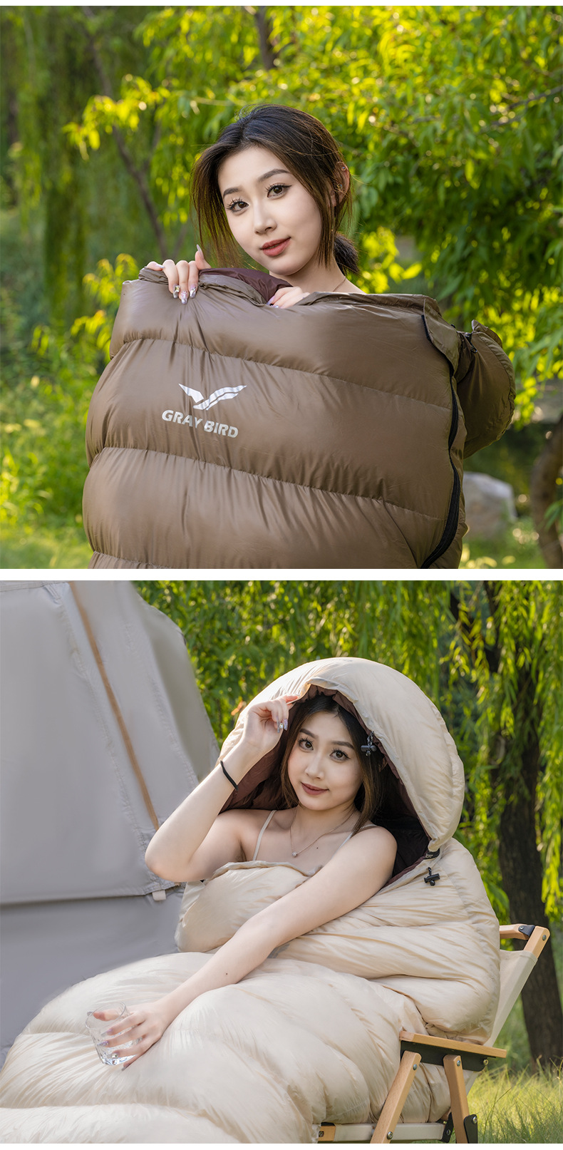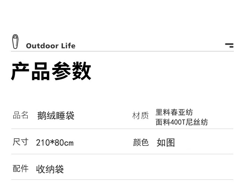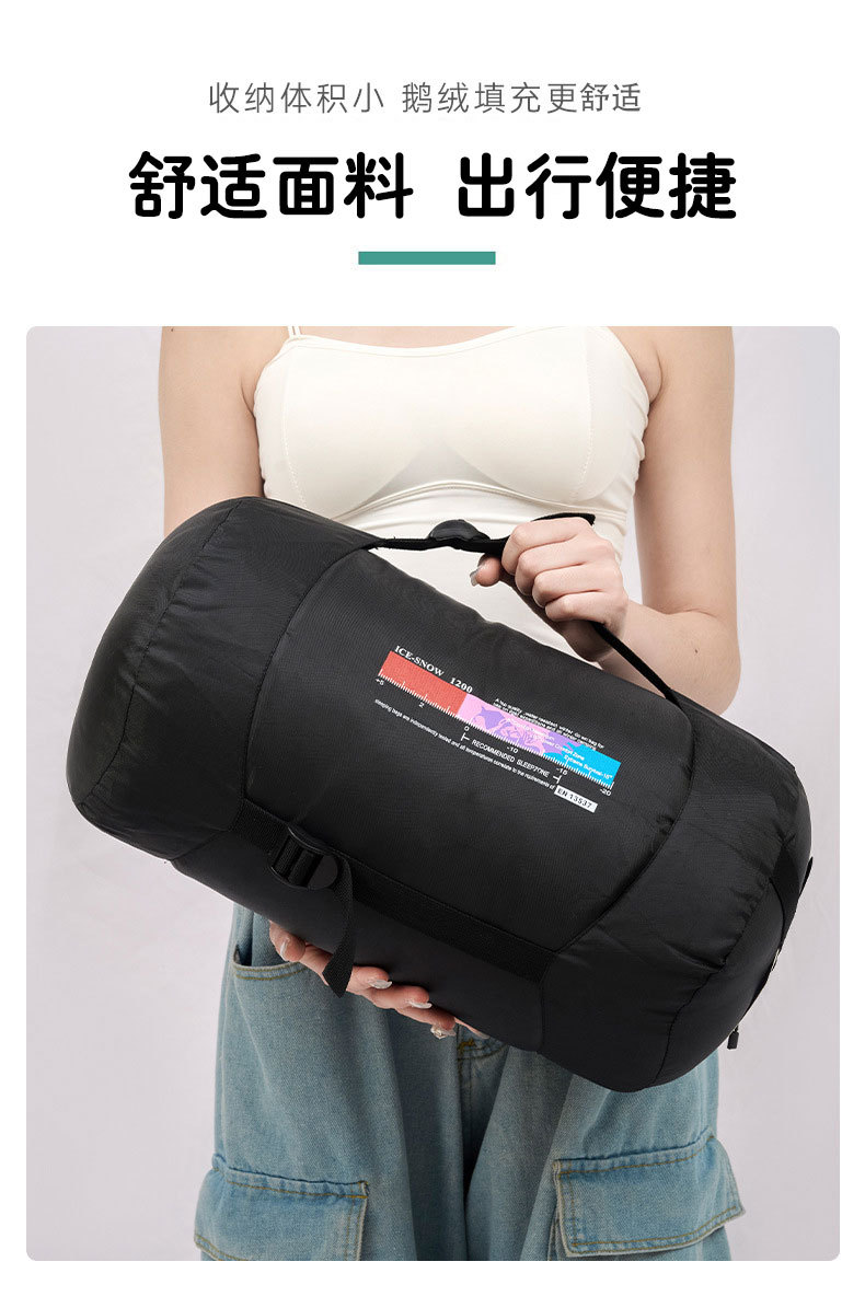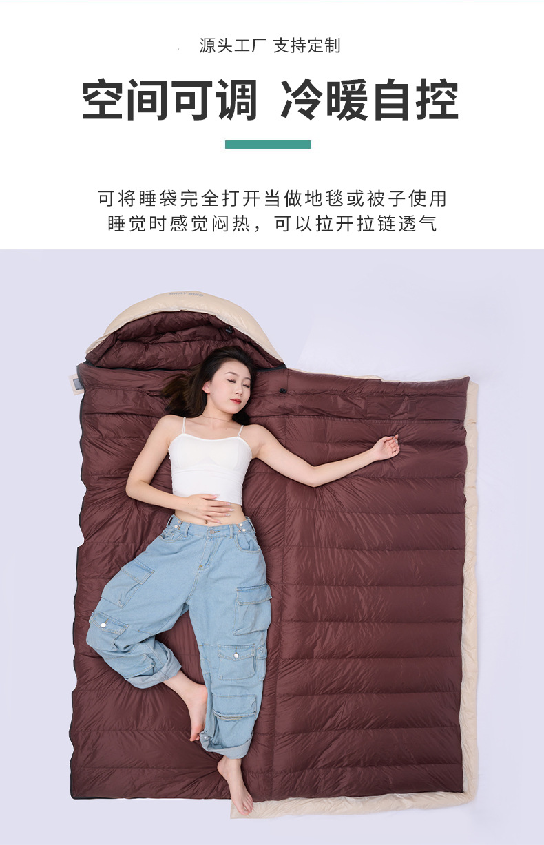 批发露营羽绒睡袋户外成人冬季鹅绒室内超轻防寒信封式成人睡袋