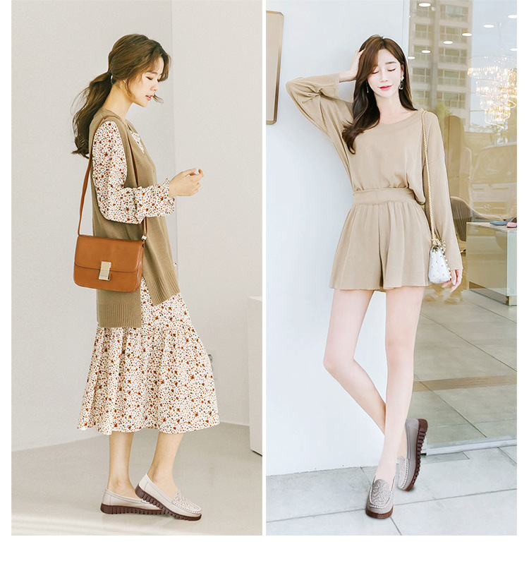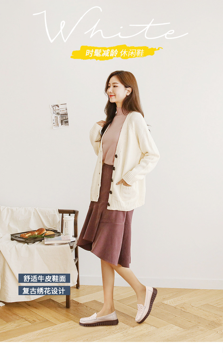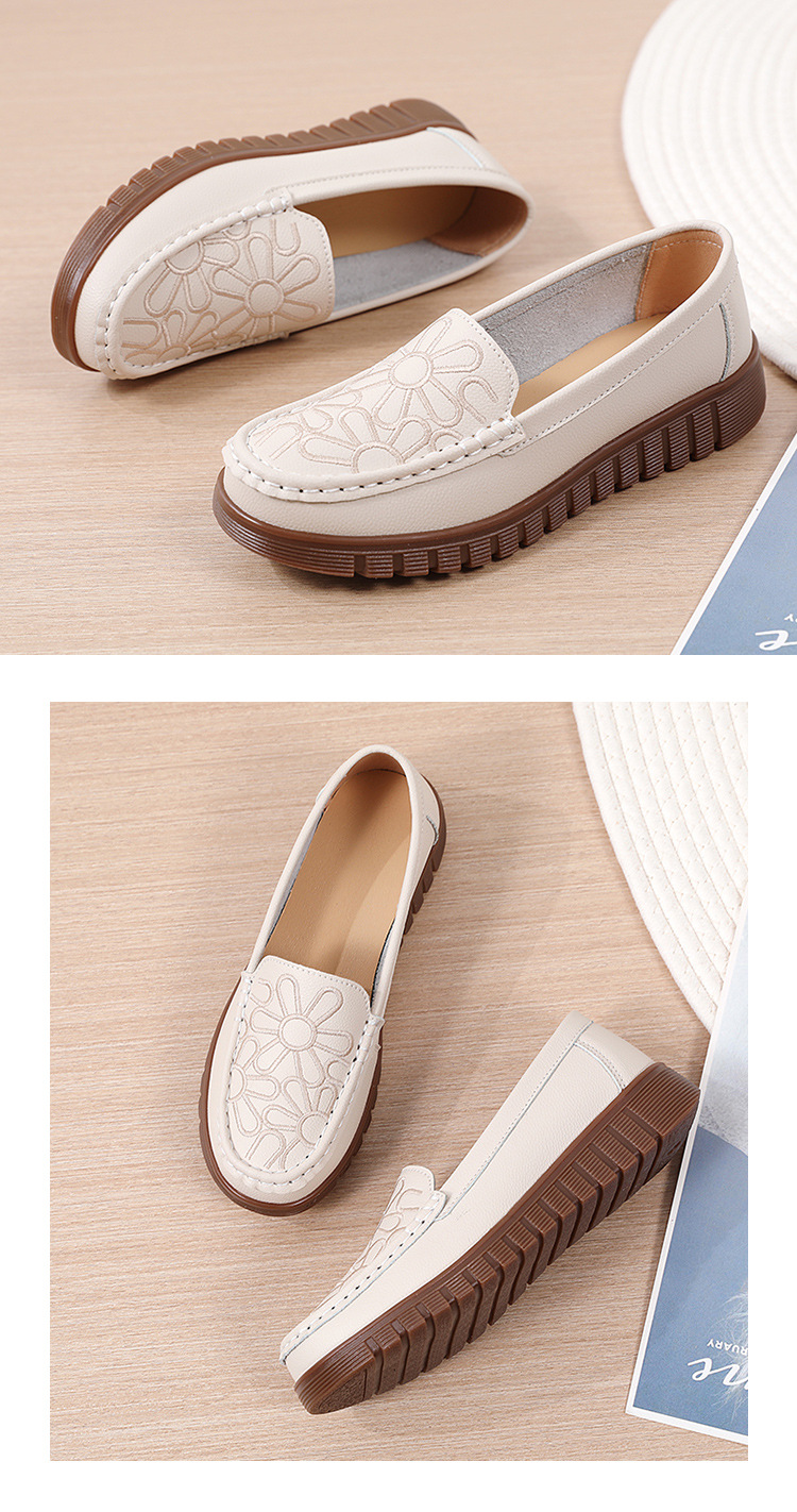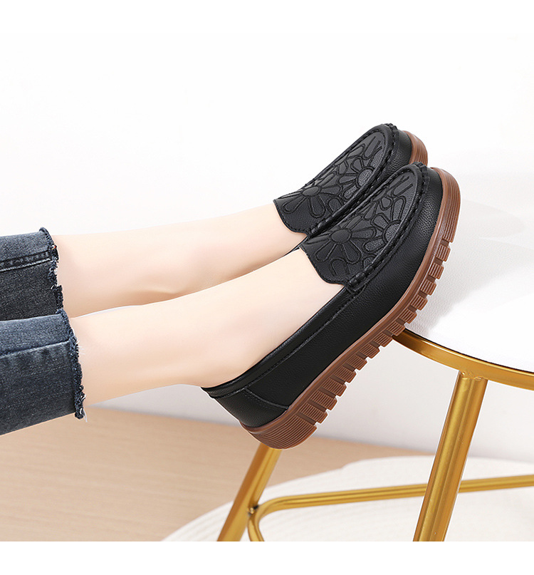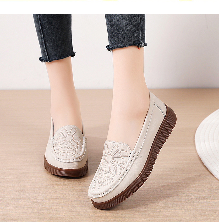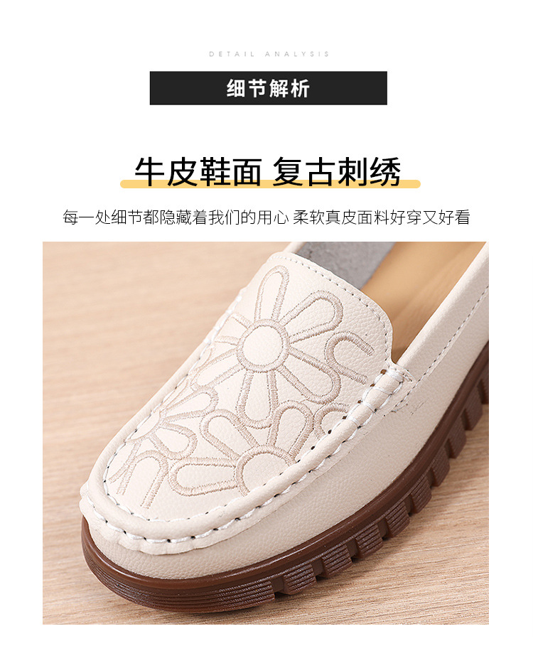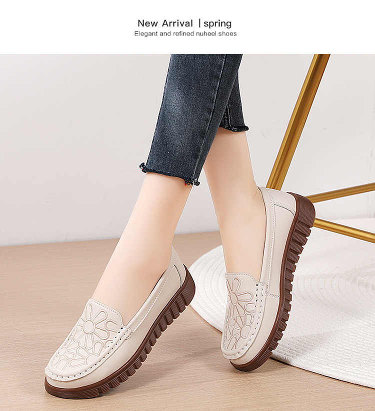 정품 가죽 여성 신발 콩 신발 중년 및 노인 어머니를위한 쇠고기 솔레 신발 플랫 비 슬립 가죽 신발 소프트 솔 비 피곤한 발 싱글 신발스토어 가기