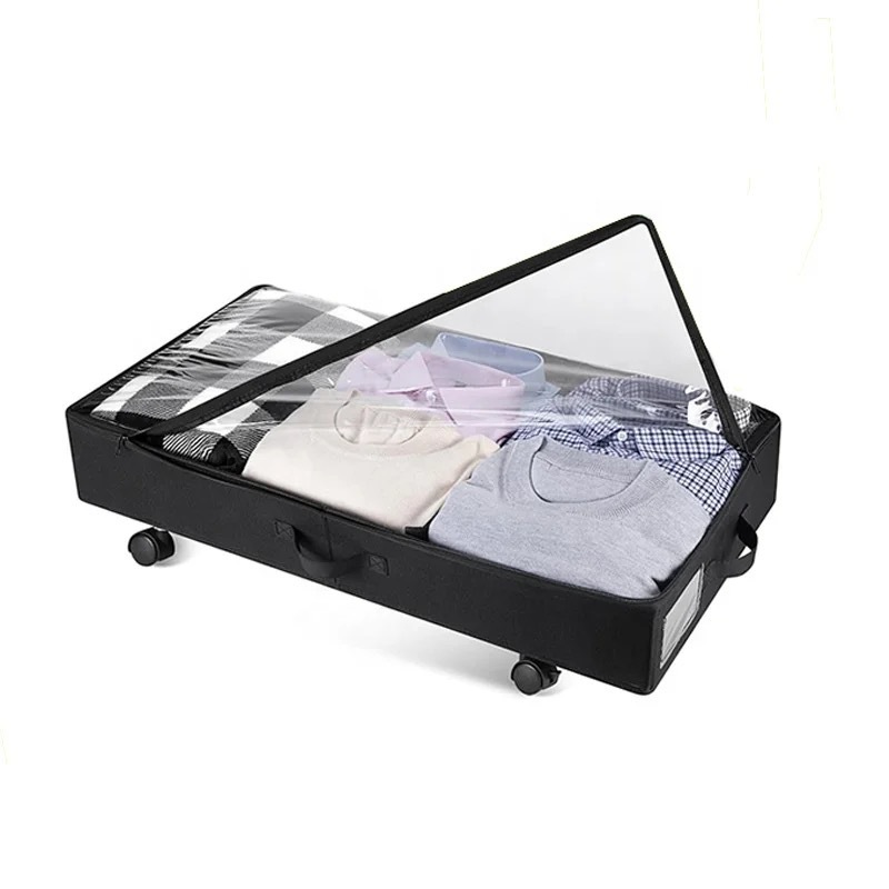 크로스보더 언더 베드 수납함 패브릭 서랍형 바퀴 달린 수납함 풀리 투명 비주얼 플랫 베드 수납함스토어 가기