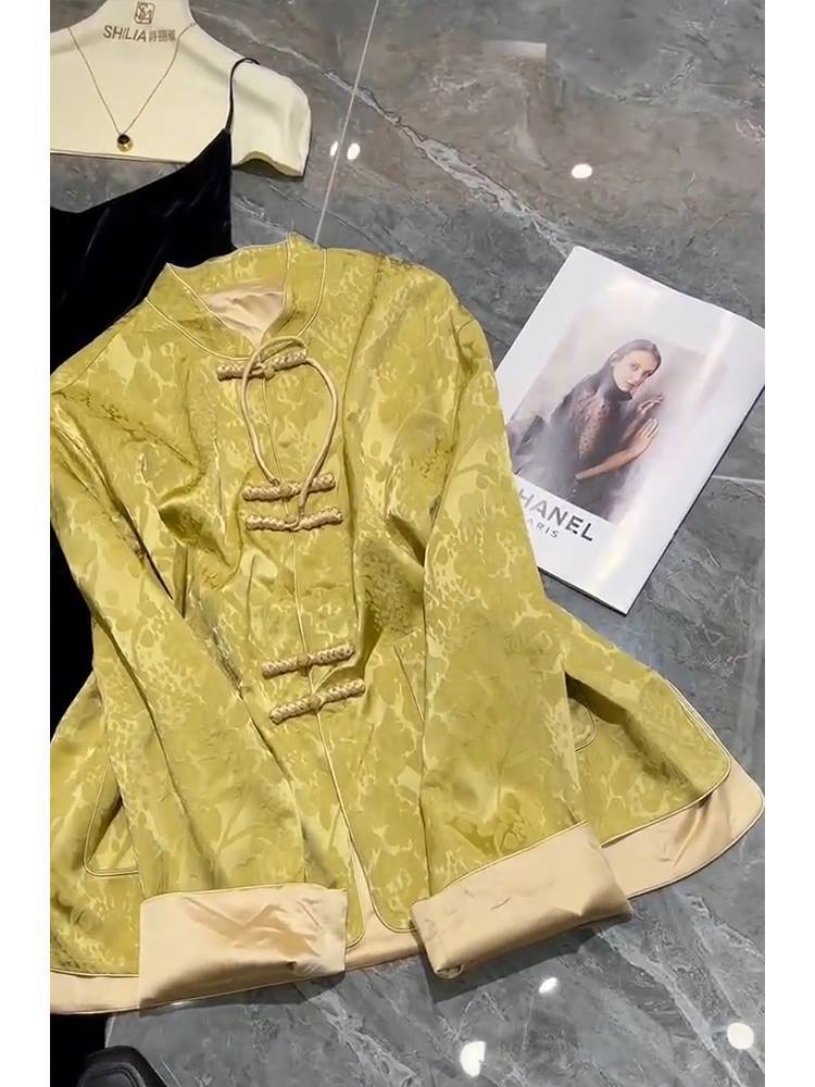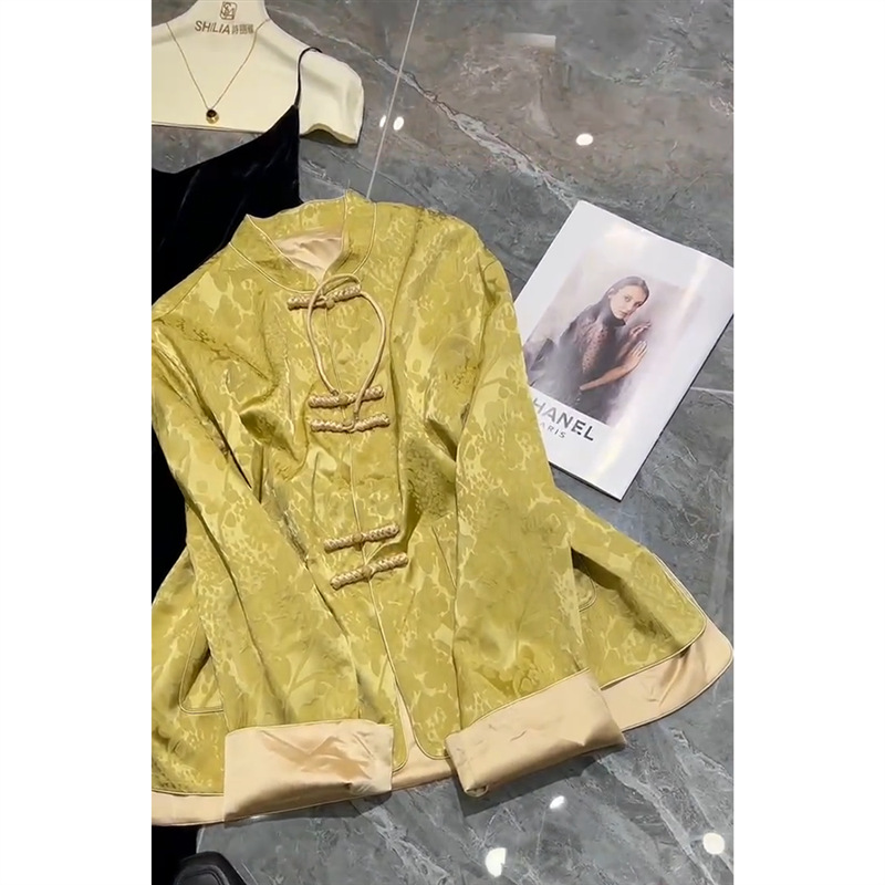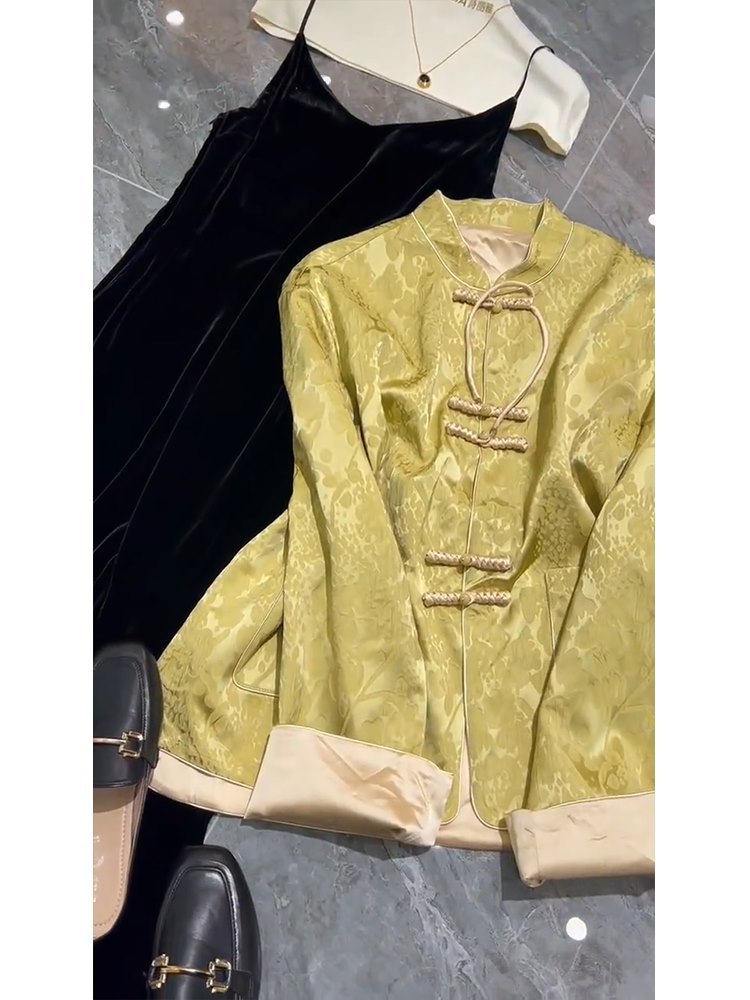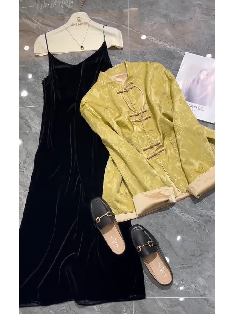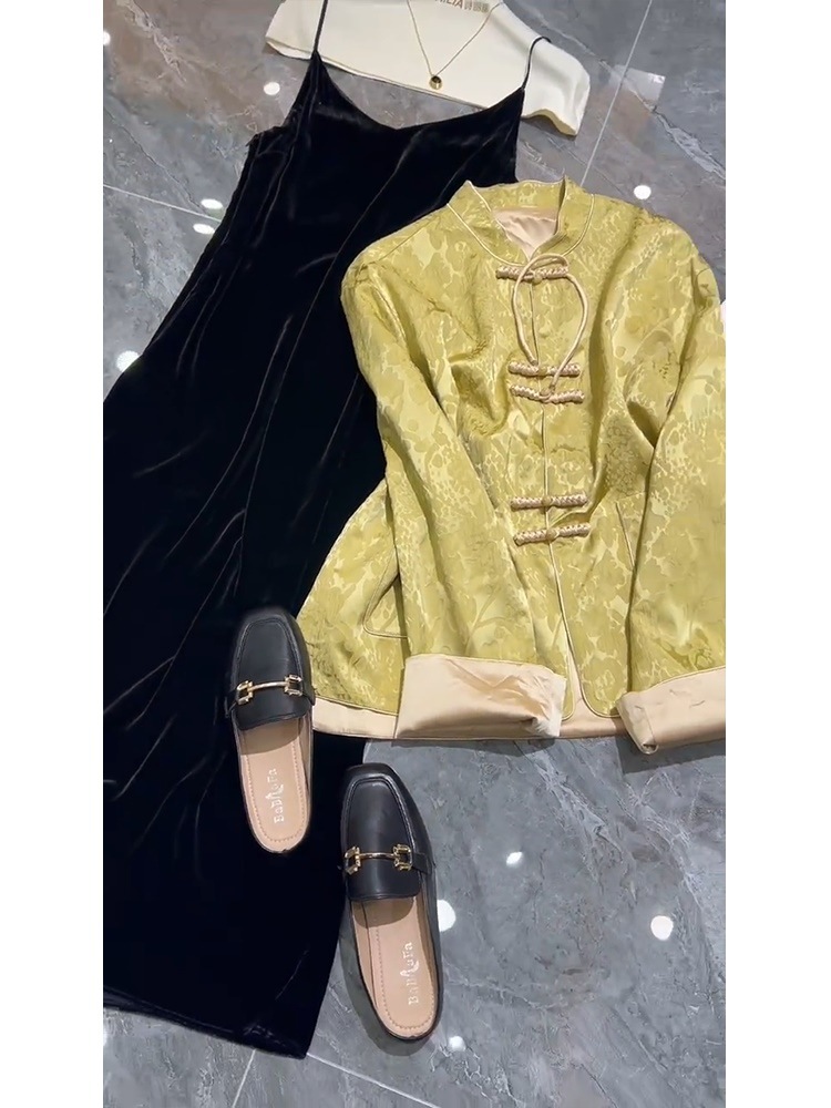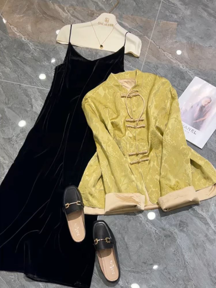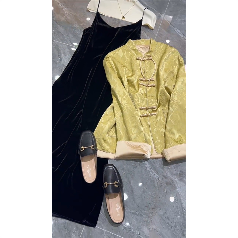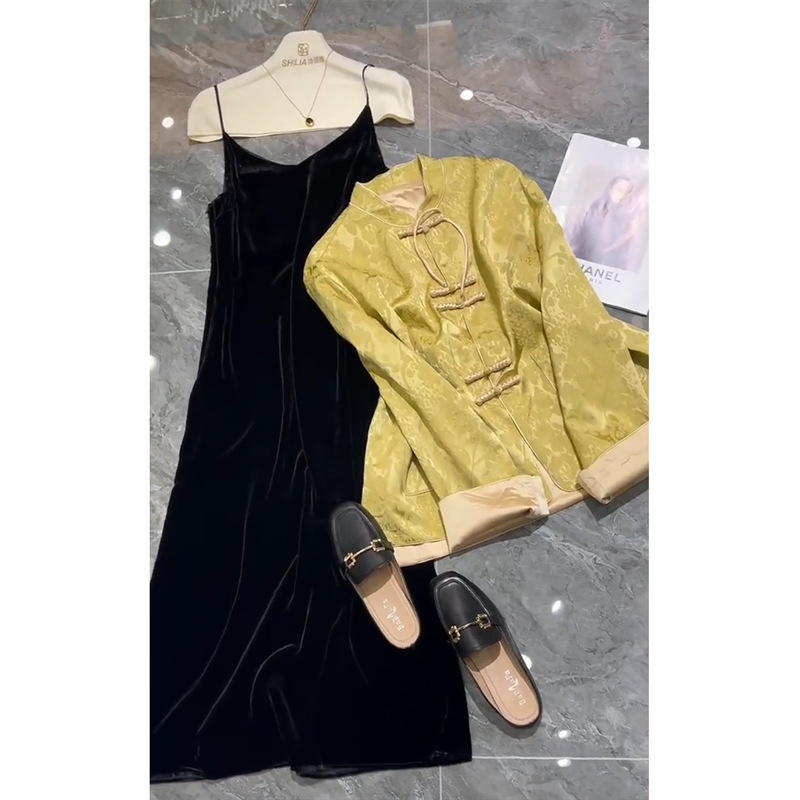 YT236957 이른 가을 2023 새로운 여자의 블랙 벨벳 원피스 새로운 중국 당나라 세트 중국 스타일 플레이트 버클스토어 가기