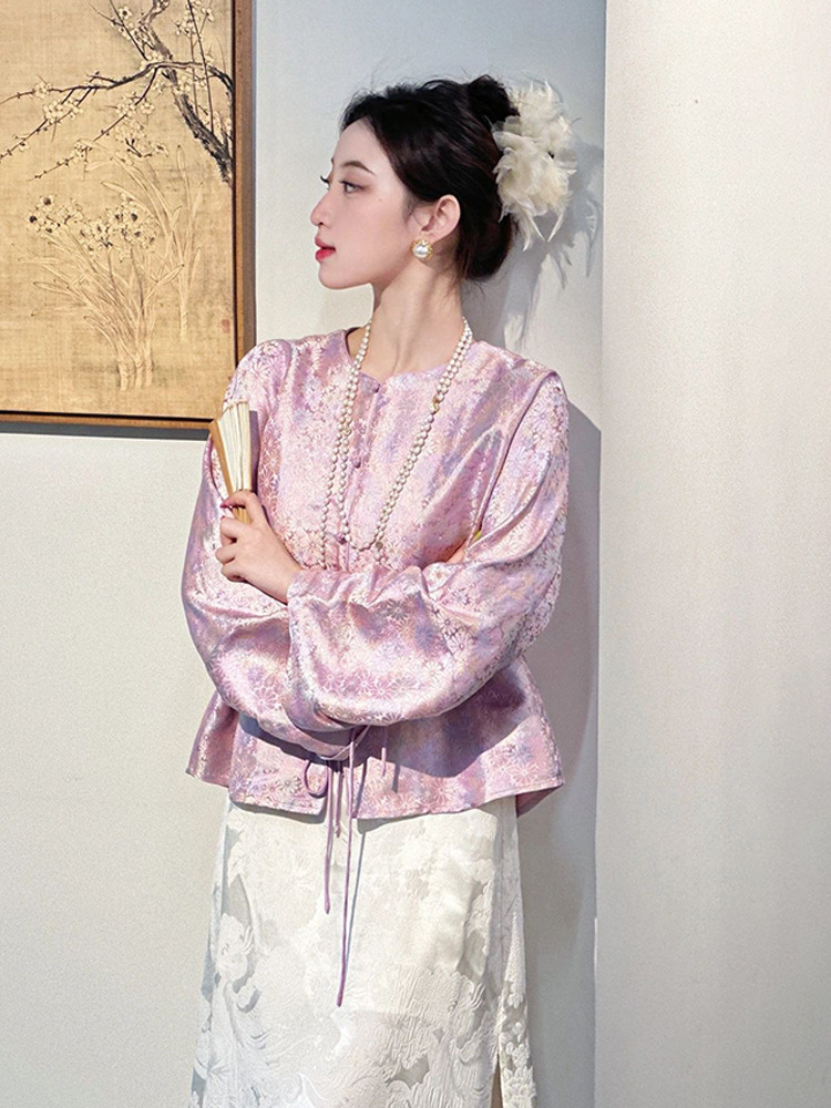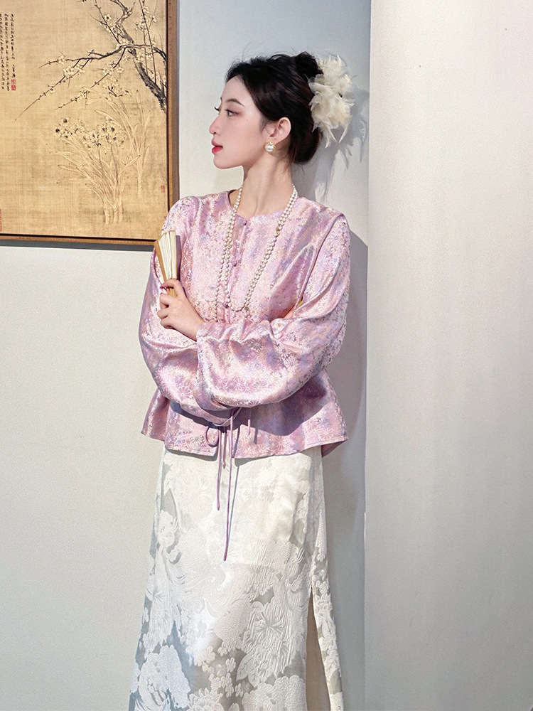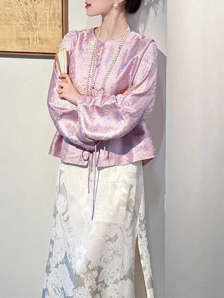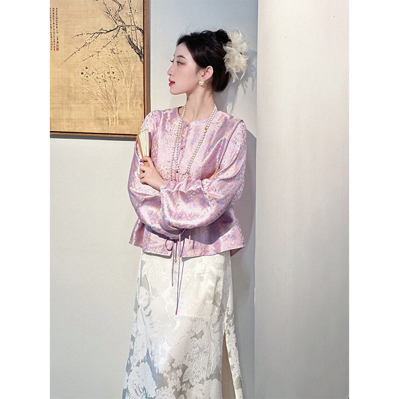 YT238788 새로운 중국 스타일 내셔널 스타일 여자의 탑 송 진 팬 버튼 올드 머니 스타일 화이트 원피스 세트 2023스토어 가기