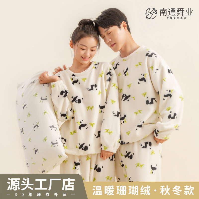 산호 벨벳 잠옷 여자의 가을과 겨울 남자의 두꺼운 가정 옷 남자 겨울 팬더 산호 벨벳 커플 잠옷