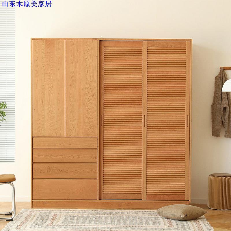 북유럽 솔리드 우드 체리 우드 옷장 현대 간단한 일본식 간단한 로그 슬라이딩 셔터 도어 옷장