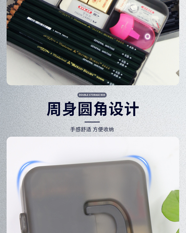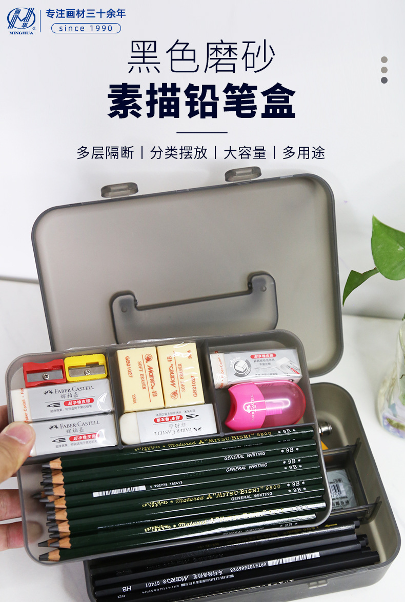휴대용 2 층 스케치 펜 상자 미술 학생 그림 플라스틱 투명 대용량 2 층 문구 상자 보관 상자 도매스토어 가기