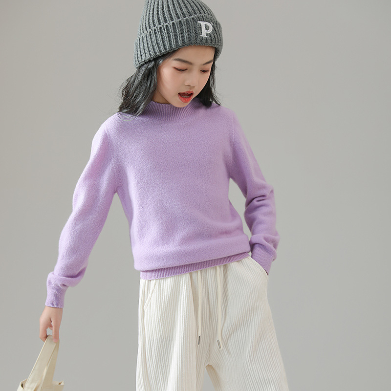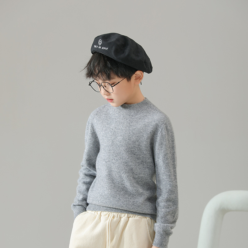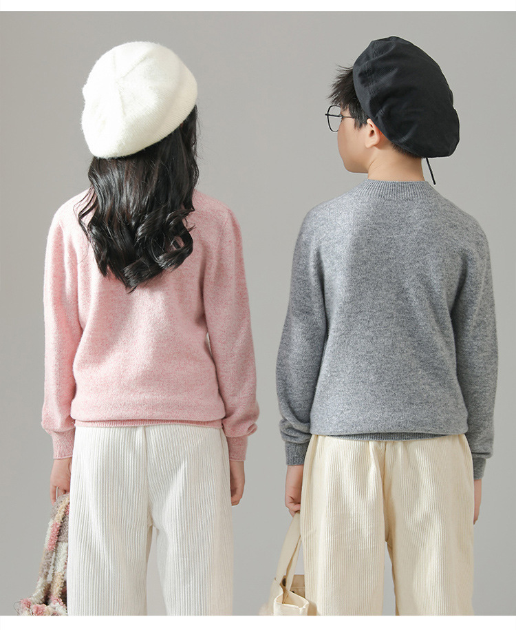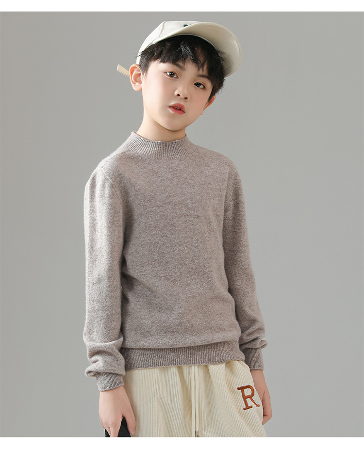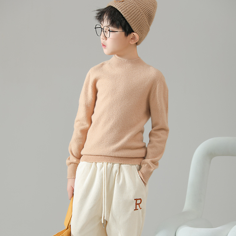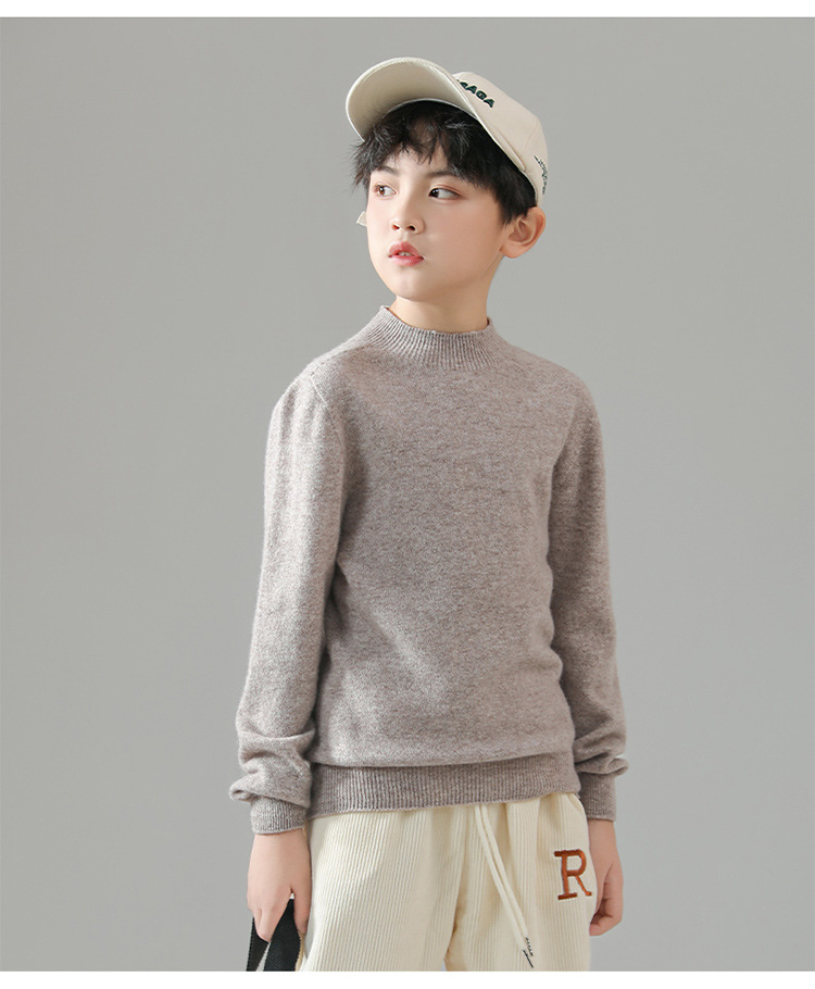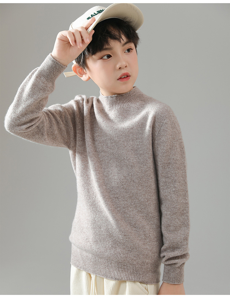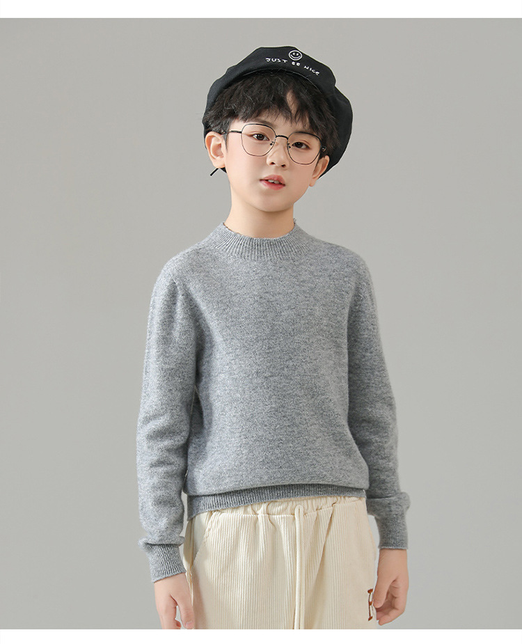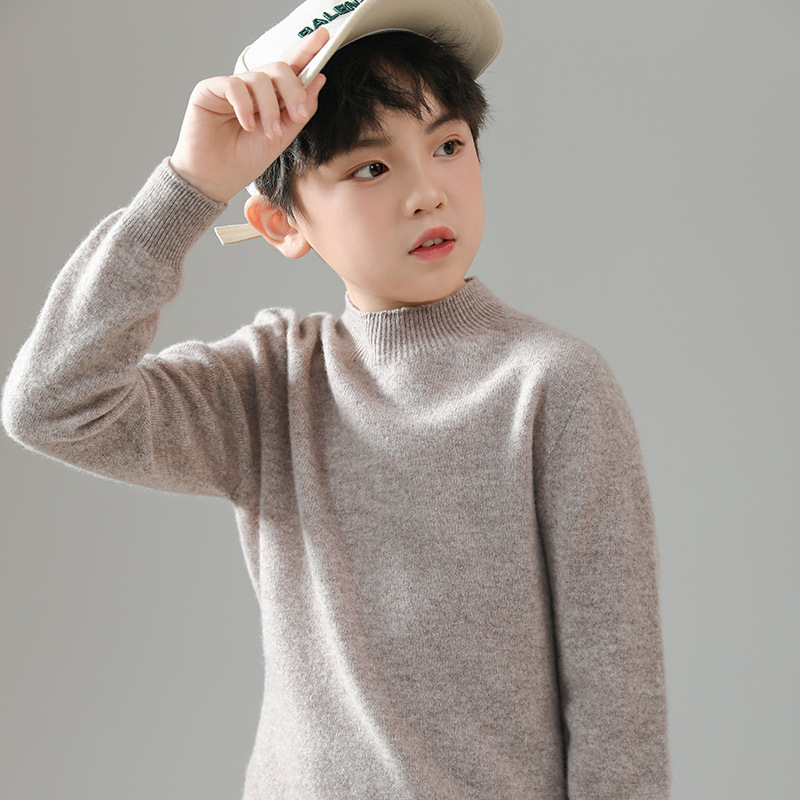 소년과 소녀를위한 어린이 울 스웨터 100 순수 울 세미 하이 칼라 가을과 겨울 신상품 한 줄 의류 풀오버 기본 스웨터