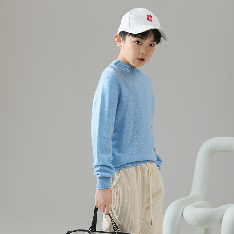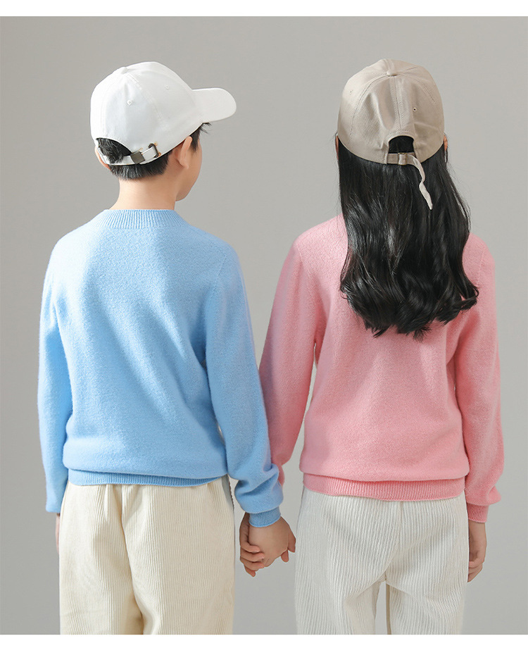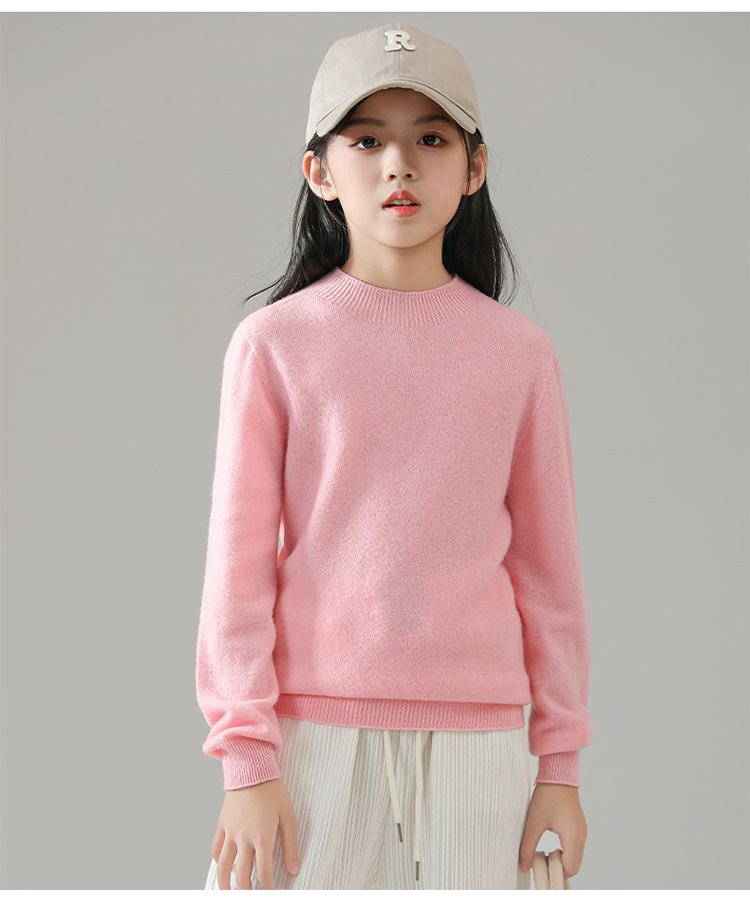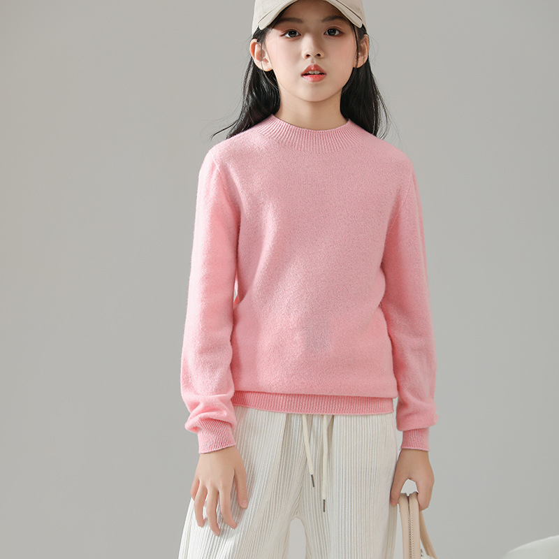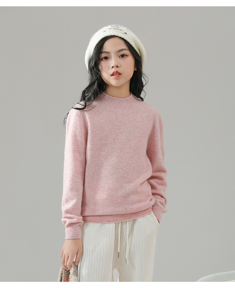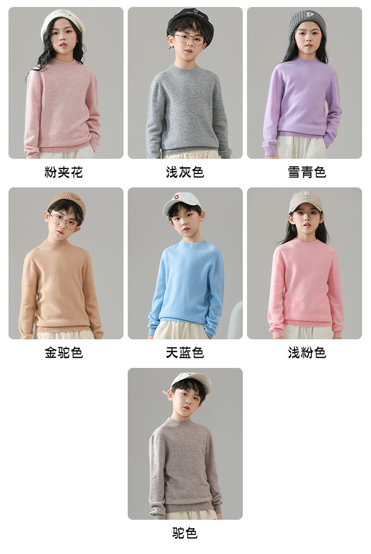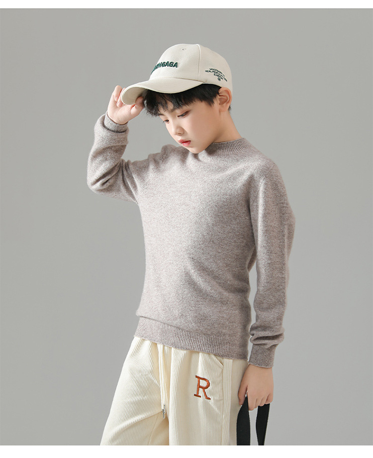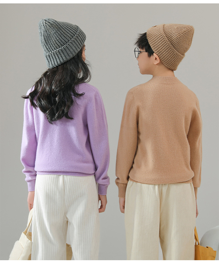 소년과 소녀를위한 어린이 울 스웨터 100 순수 울 세미 하이 칼라 가을과 겨울 신상품 한 줄 의류 풀오버 기본 스웨터