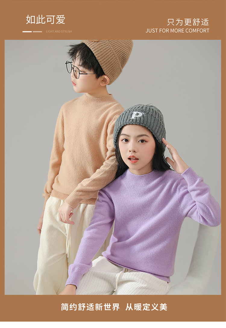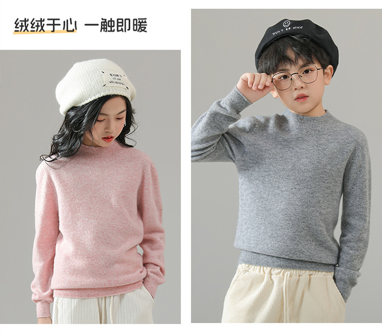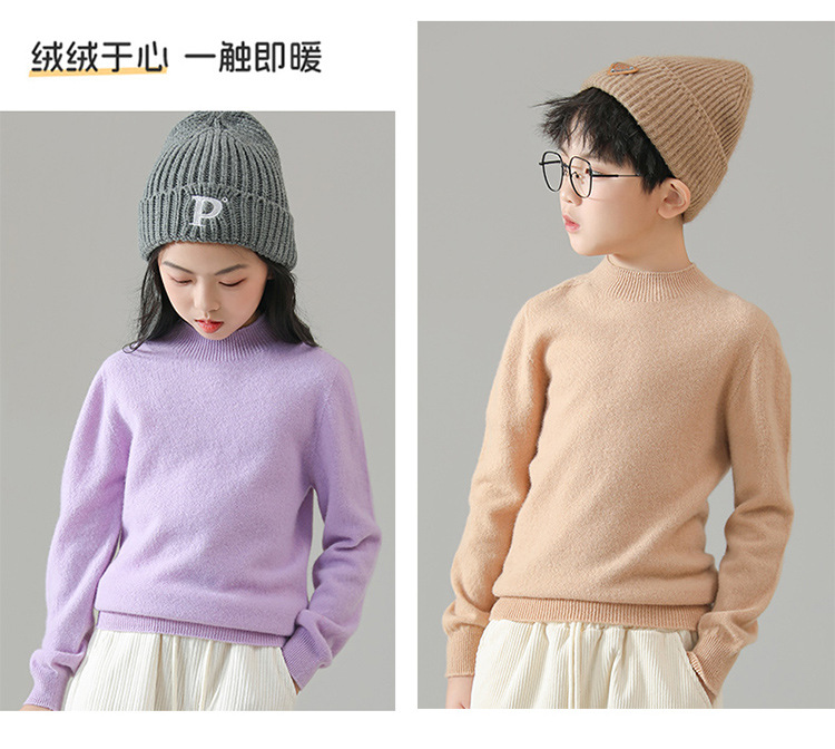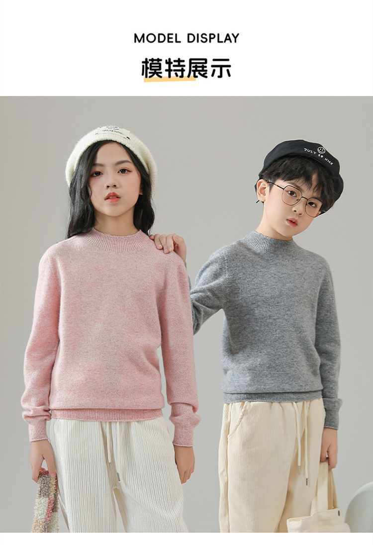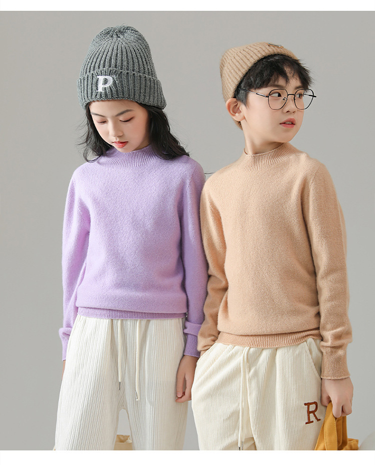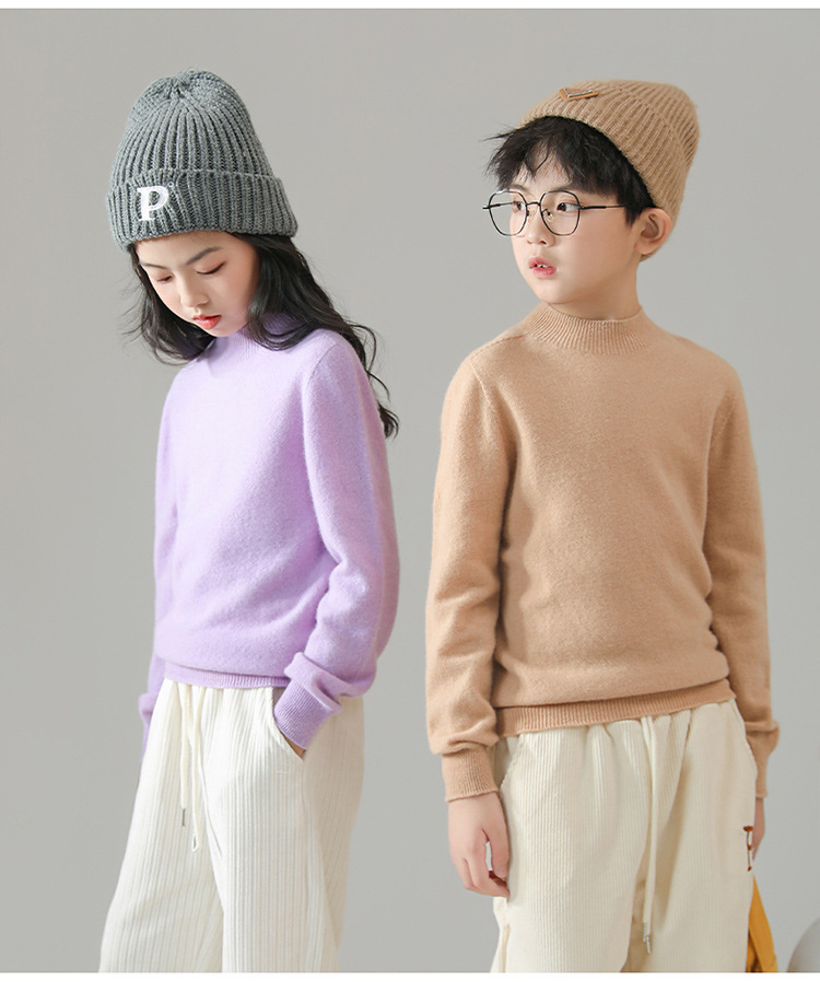 소년과 소녀를위한 어린이 울 스웨터 100 순수 울 세미 하이 칼라 가을과 겨울 신상품 한 줄 의류 풀오버 기본 스웨터스토어 가기