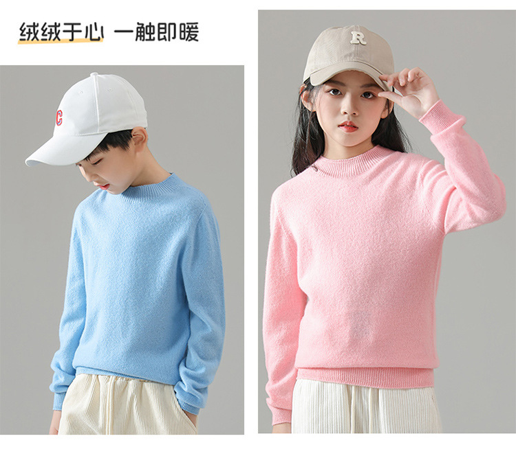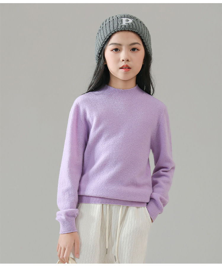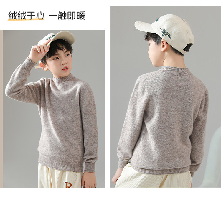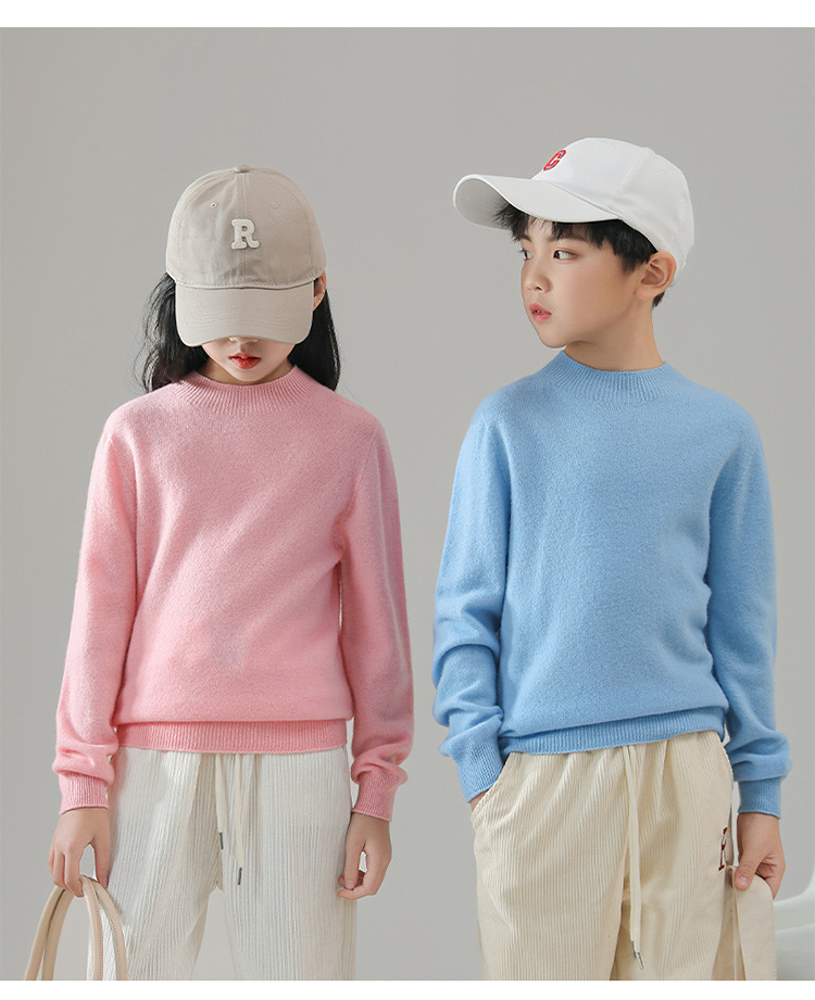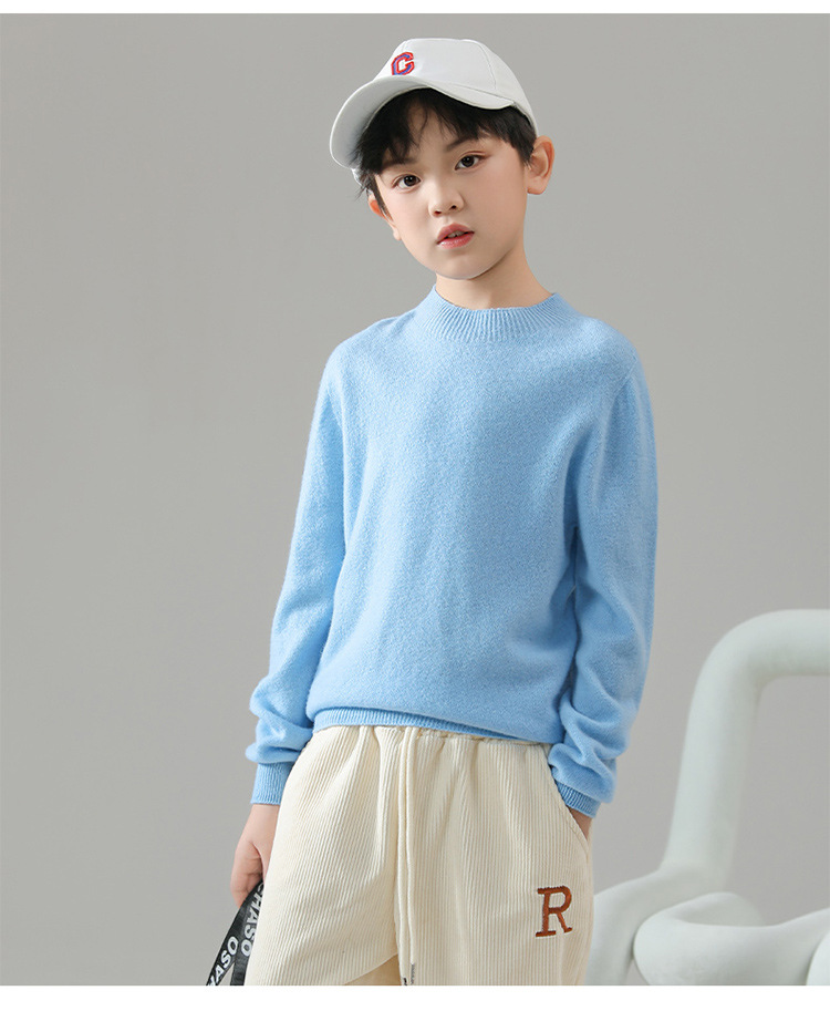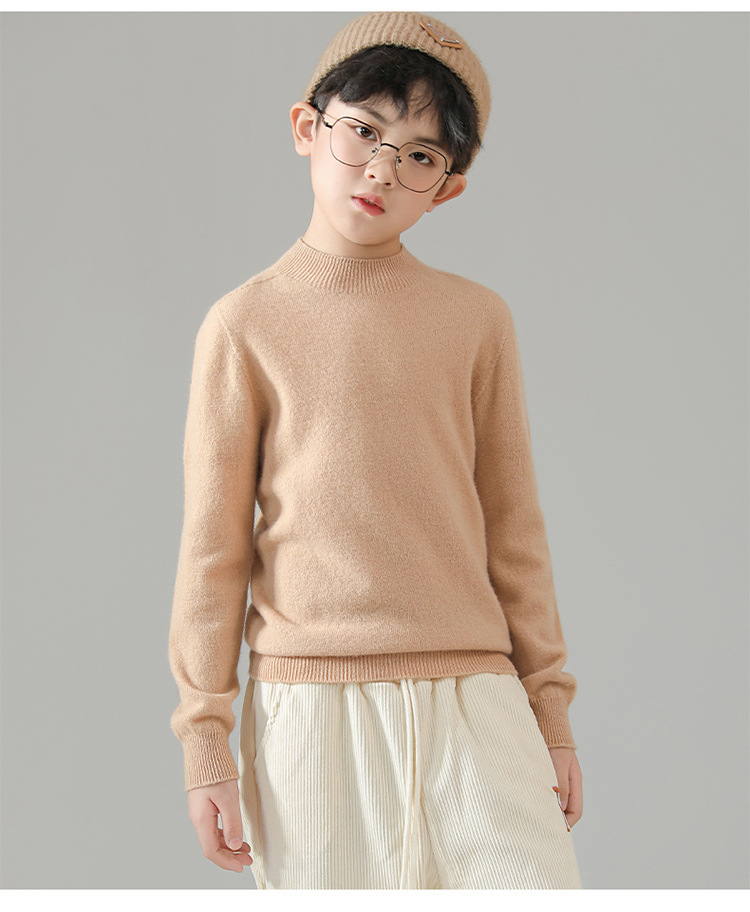 소년과 소녀를위한 어린이 울 스웨터 100 순수 울 세미 하이 칼라 가을과 겨울 신상품 한 줄 의류 풀오버 기본 스웨터스토어 가기
