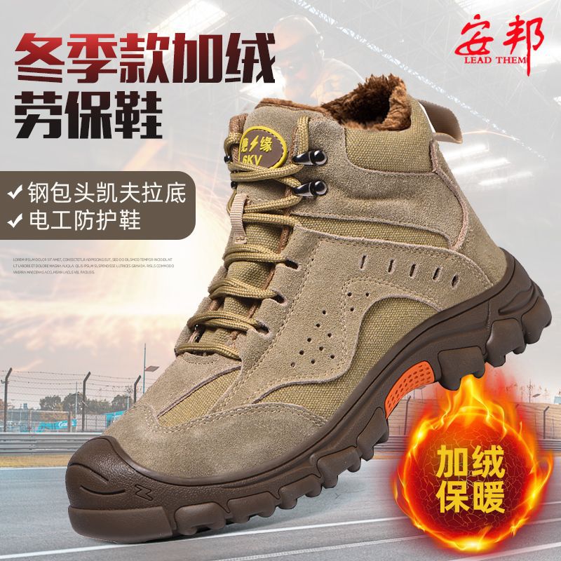 겨울 기모 따뜻한 노동 보호 신발 남성용 스매시 방지 핀 방지 겨울 작업 면화 신발 미드 탑 용접기 보호 신발