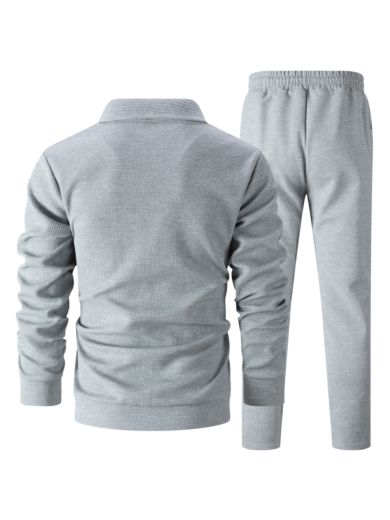 2025 크로스 보더 재킷 남자 가을 청소년 와플 지퍼 포켓 랩 슬림핏 카디건 남자 재킷 세트