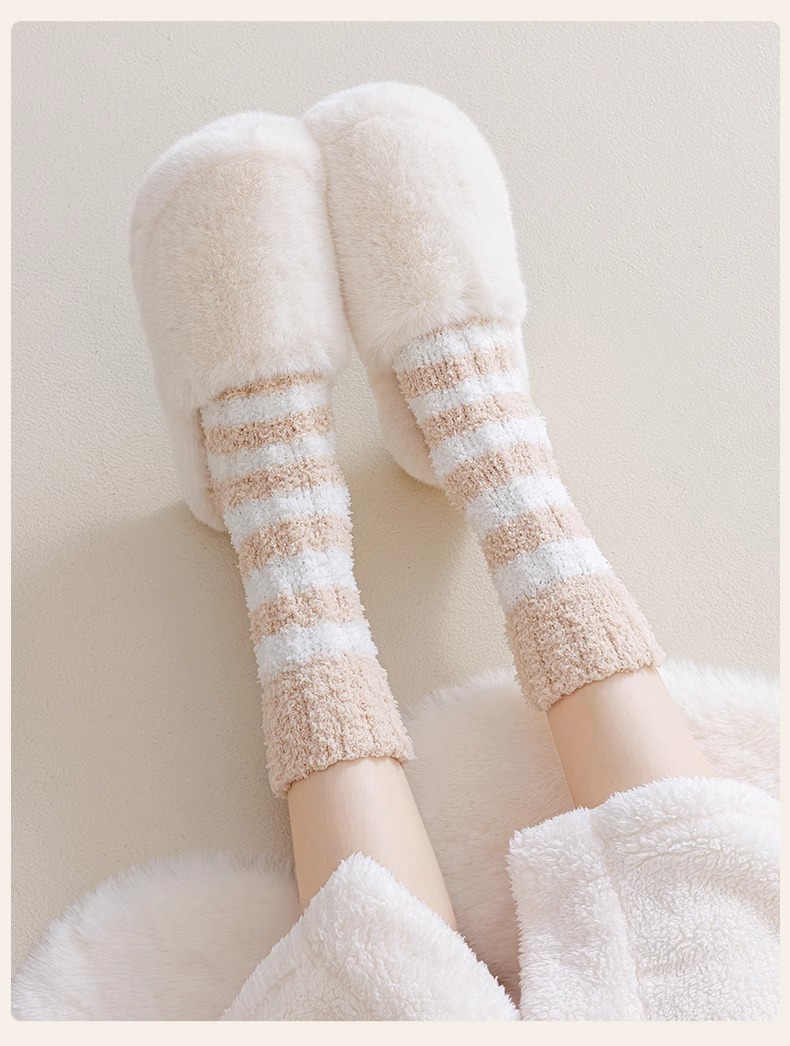산호 벨벳 양말 여자의 가을과 겨울 중간 길이 양말 기모 두꺼운 달 양말 가정 수면 느슨한 긴 튜브 바닥 양말