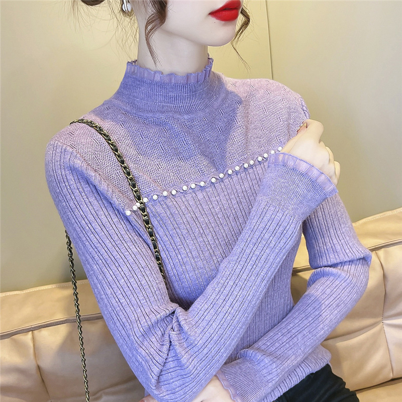 재고 가을과 겨울 새로운 한국 여성의 하프 하이 넥 단색 풀오버 베이스 멀티 컬러 슬리밍 중공 스웨터 니트 스웨터스토어 가기