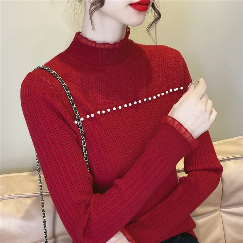 재고 가을과 겨울 새로운 한국 여성의 하프 하이 넥 단색 풀오버 베이스 멀티 컬러 슬리밍 중공 스웨터 니트 스웨터