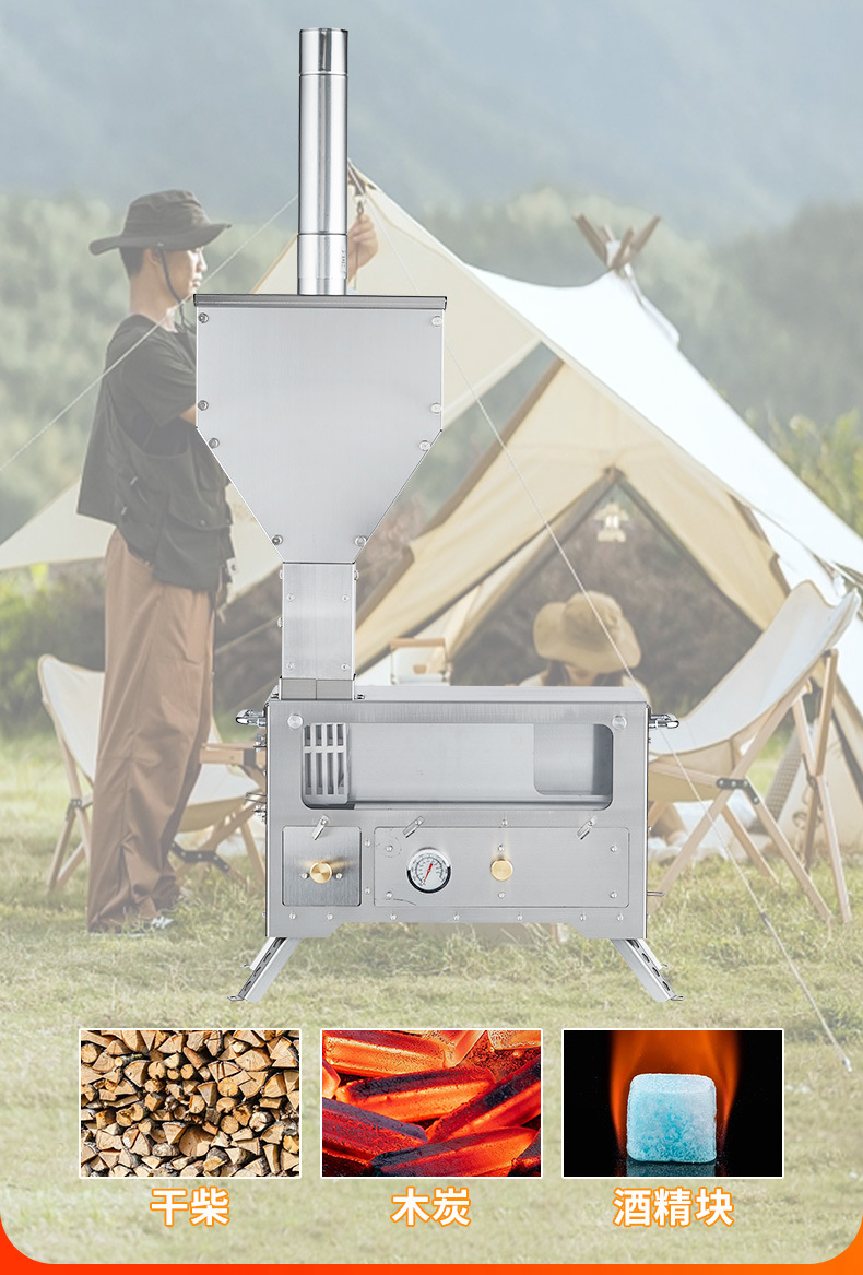 야외 캠핑용 입자 난로, 캠핑용 휴대용 난로 겸용 그릴, 다기능 스테인리스 피크닉 장작 난로