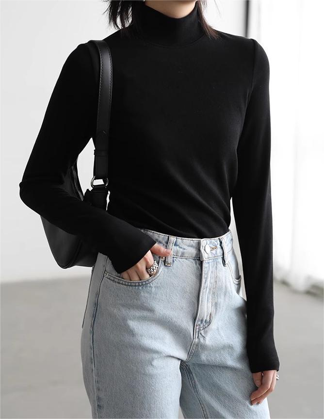 CHICVEN 가을과 겨울 난방 따뜻한 양털 세미 하이 칼라 풀오버 베이스 셔츠 따뜻한 양털 탑 여성용 2023스토어 가기