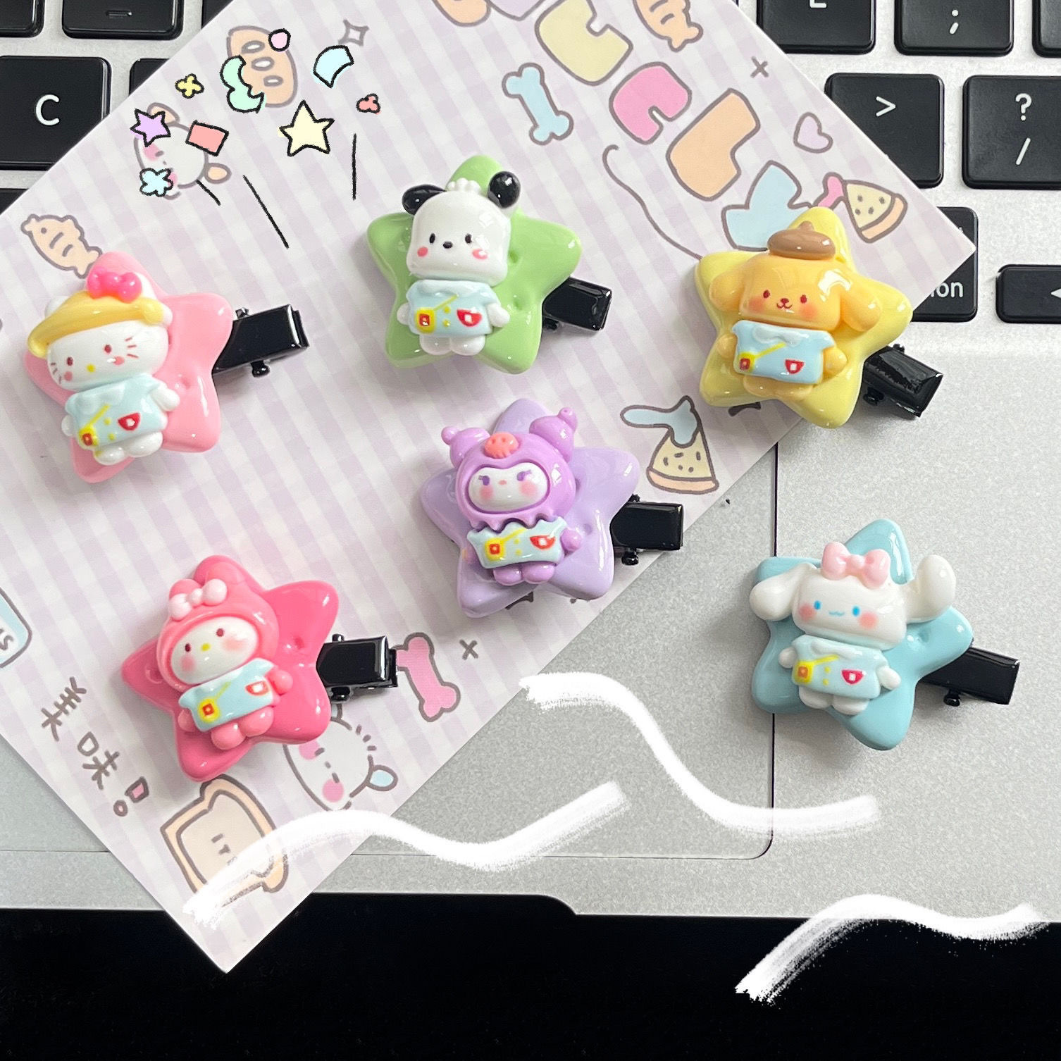 귀여운 산리오 스타 비스킷 머리핀 소녀 달콤한 만화 다섯개 별 측면 클립 소녀의 귀여운 헤어 액세서리스토어 가기