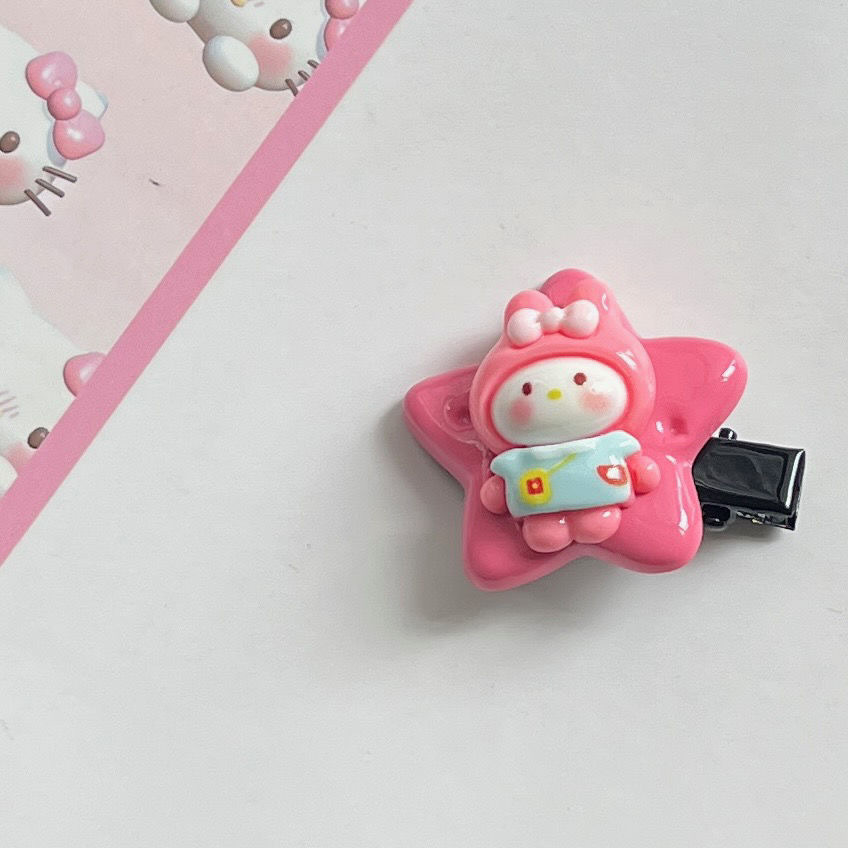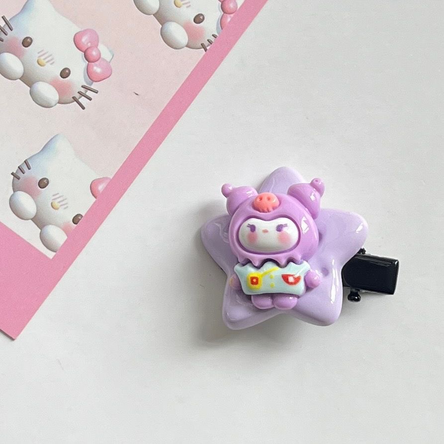 귀여운 산리오 스타 비스킷 머리핀 소녀 달콤한 만화 다섯개 별 측면 클립 소녀의 귀여운 헤어 액세서리