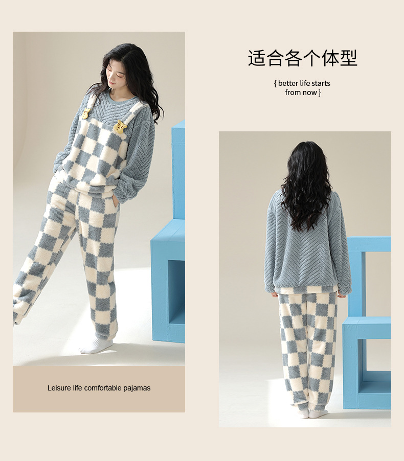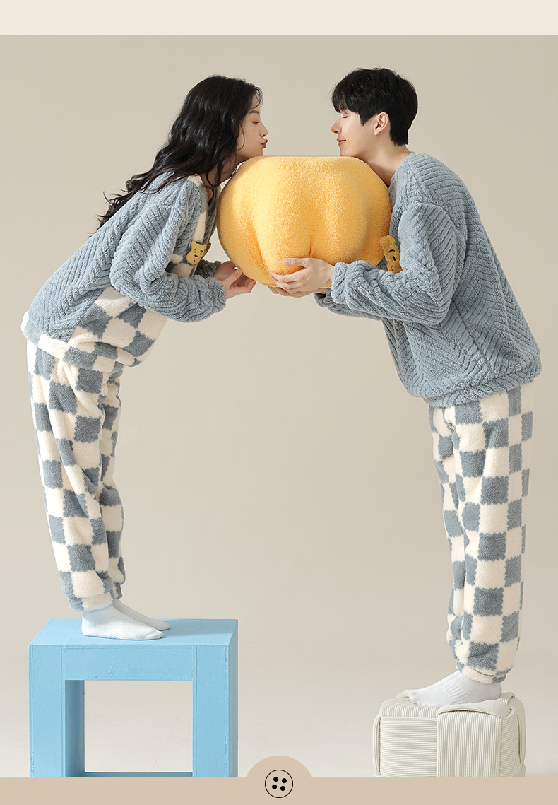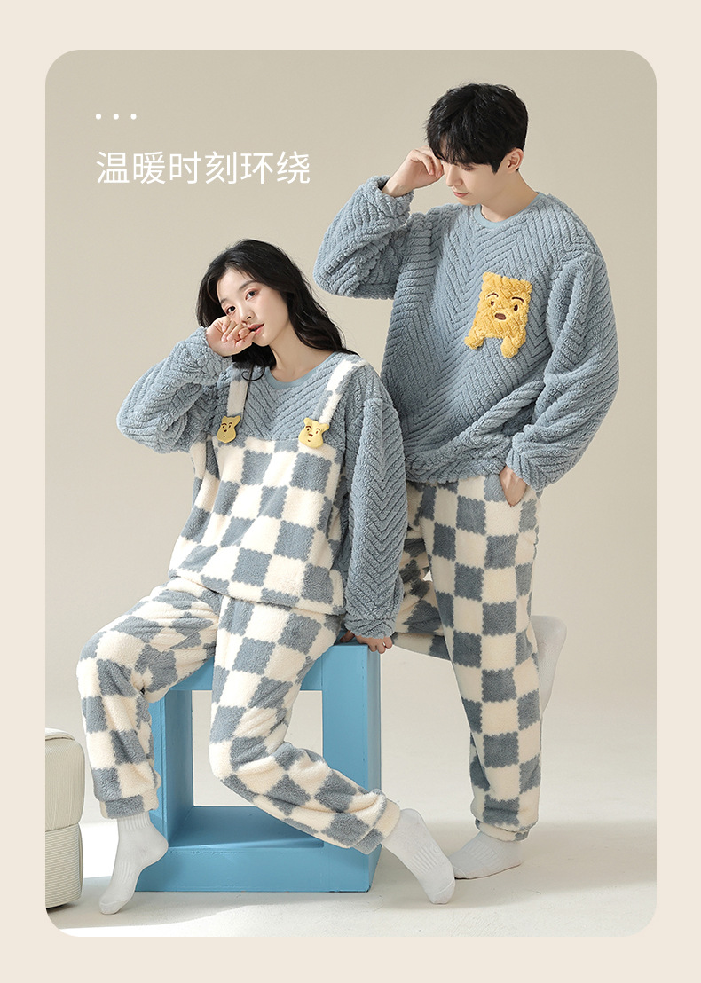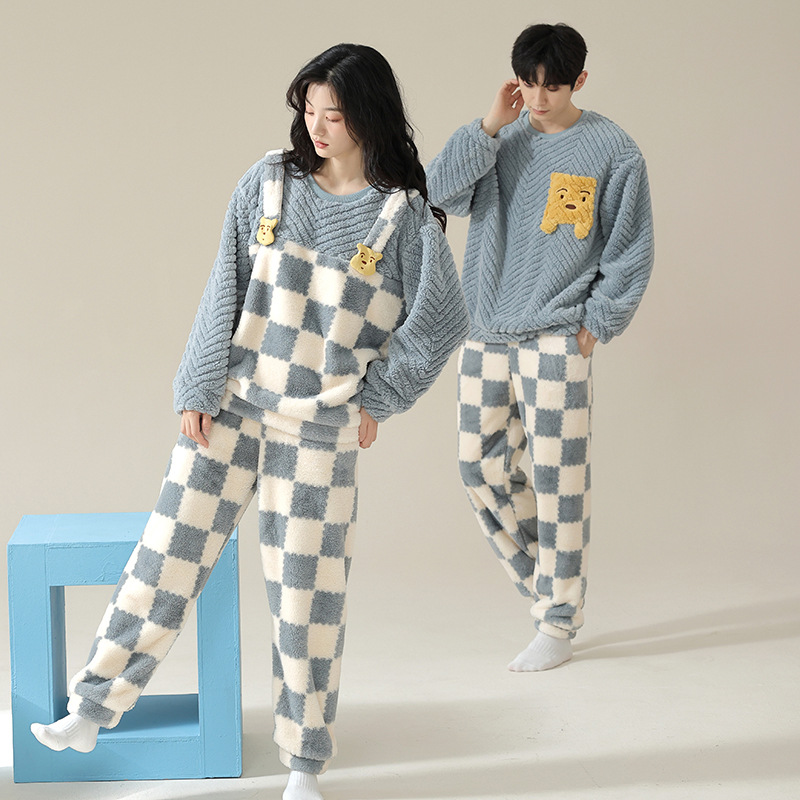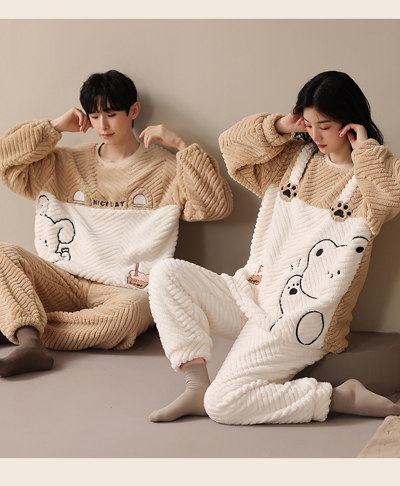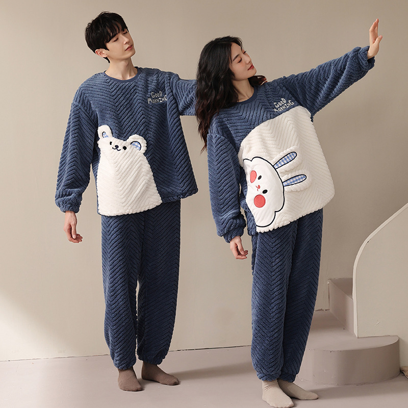 부드러운 면화 만화 커플 산호 양털 잠옷 여자의 가을과 겨울 귀여운 풀오버 따뜻한 자카드 양털 가정 옷 머리카락의 세대