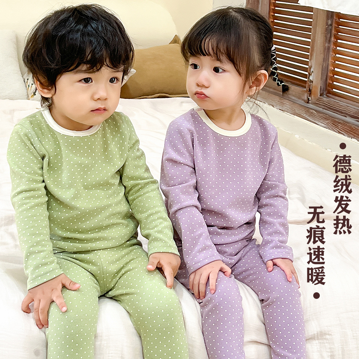 어린이 두꺼운 열 속옷 겨울 빠른 온난화 어린이 잠옷 아기의 가을 옷 긴 바지 양털 세트스토어 가기