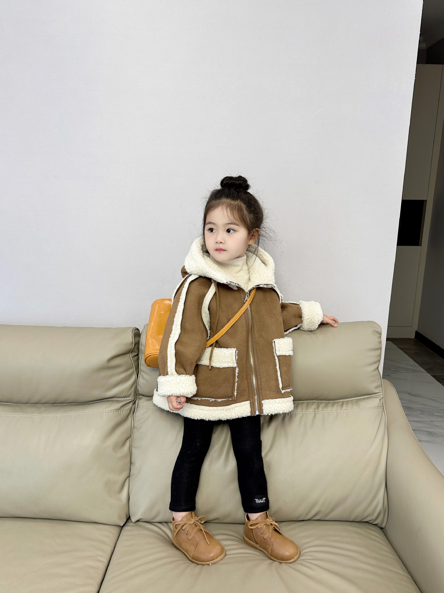 어린이 한국식 아동복 2023 가을과 겨울 새로운 소녀 외국 스타일 모피 원피스 패딩 재킷 스웨이드 플러시 탑스토어 가기