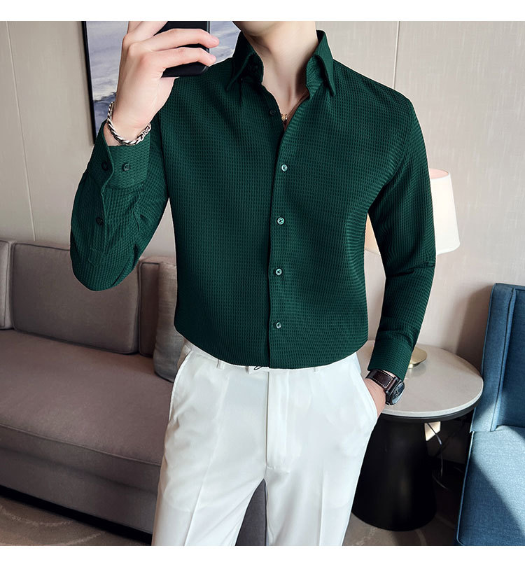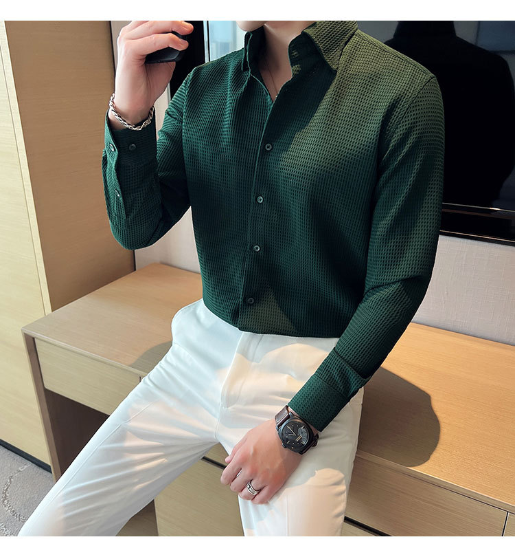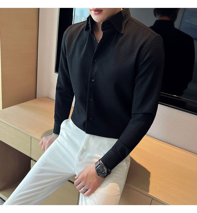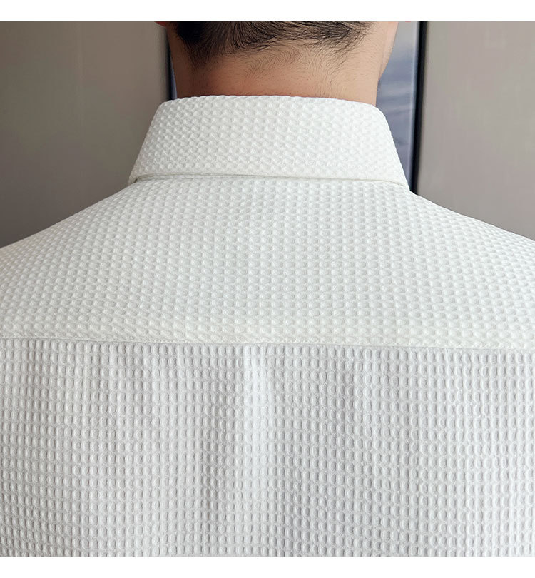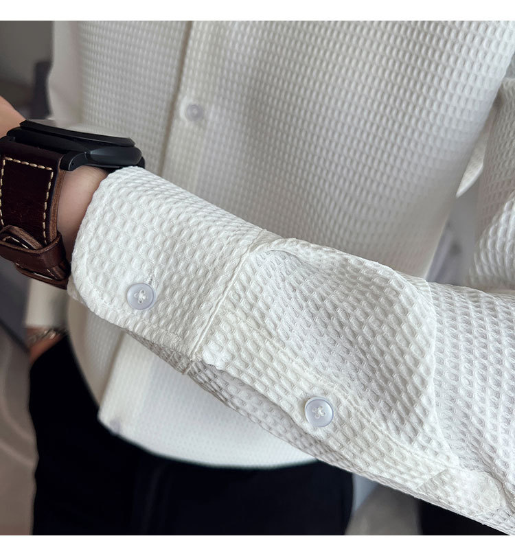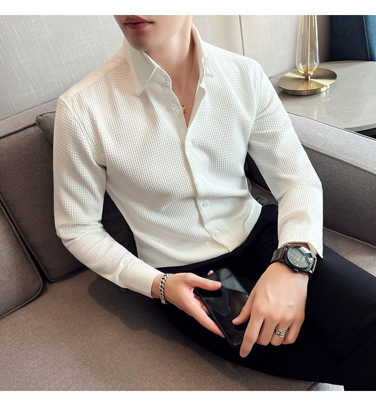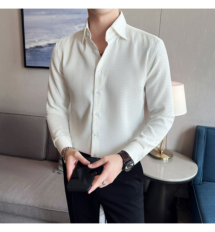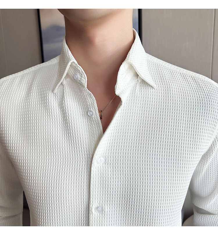 남성용 셔츠 긴팔 봄과 가을 하이 엔드 2023 새로운 와플 슬림 핏 비즈니스 캐주얼 빅 칼라 화이트 셔츠