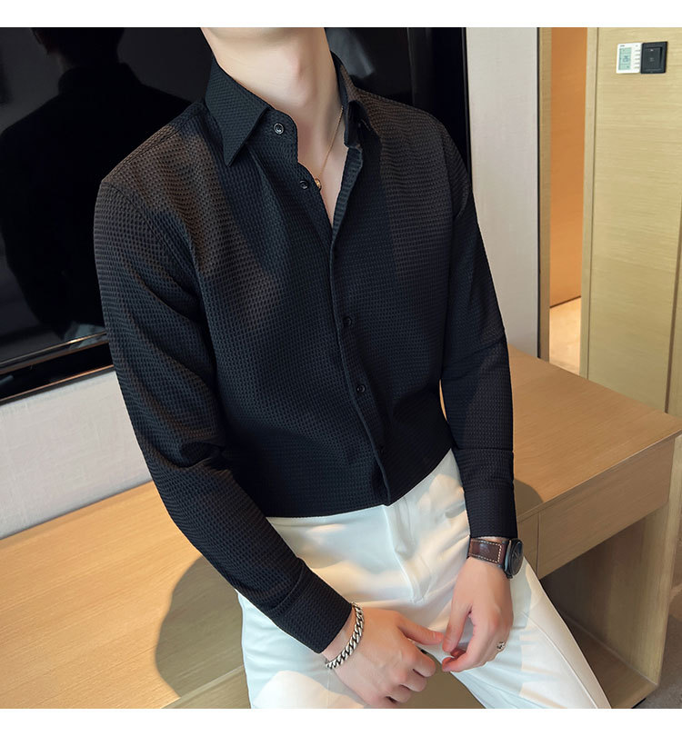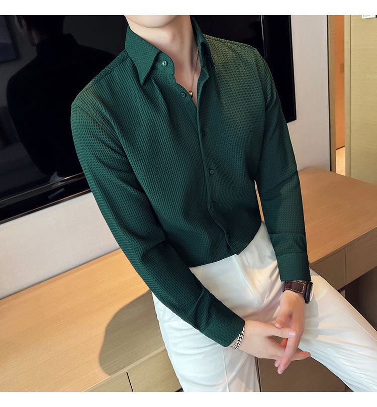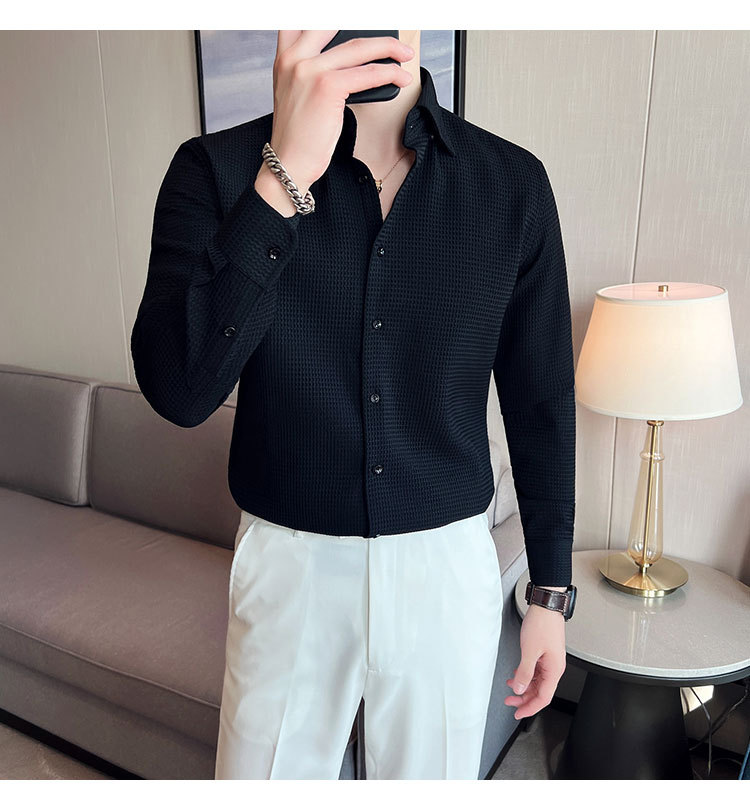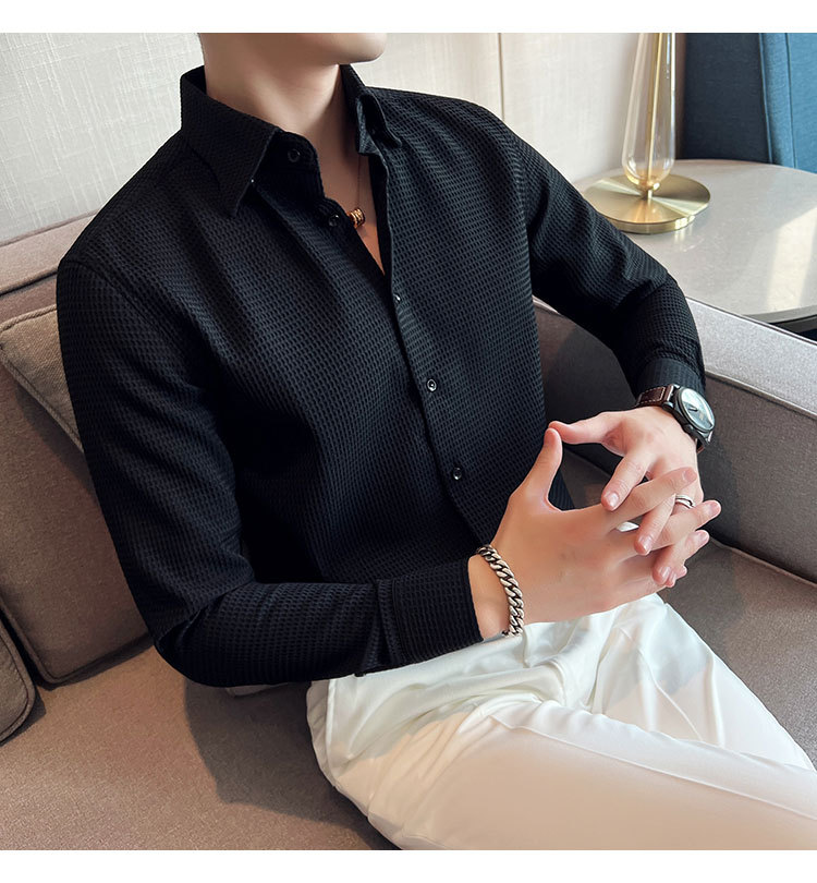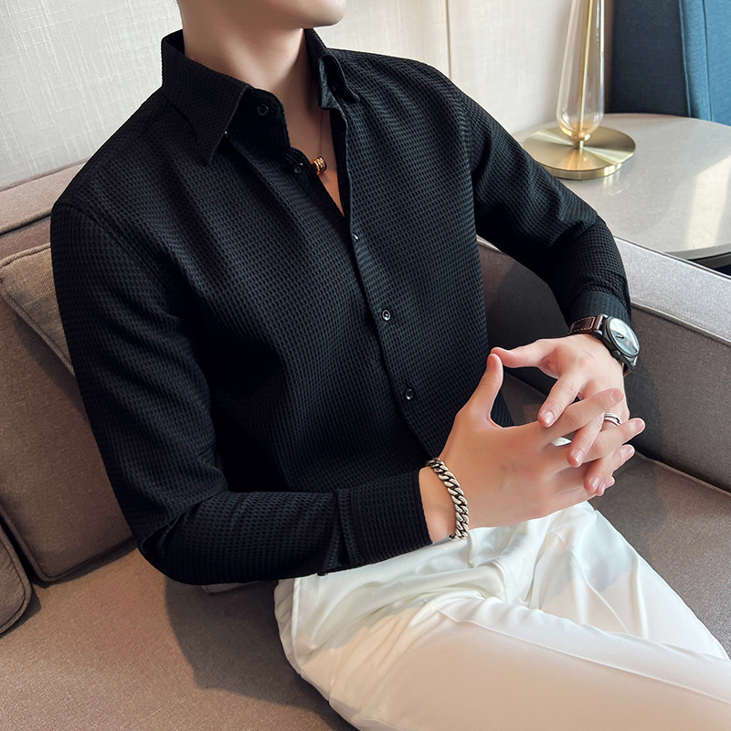 남성용 셔츠 긴팔 봄과 가을 하이 엔드 2023 새로운 와플 슬림 핏 비즈니스 캐주얼 빅 칼라 화이트 셔츠스토어 가기