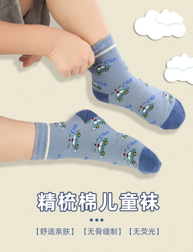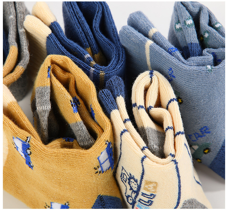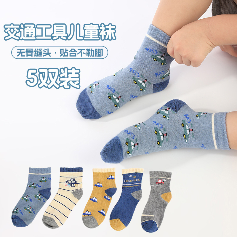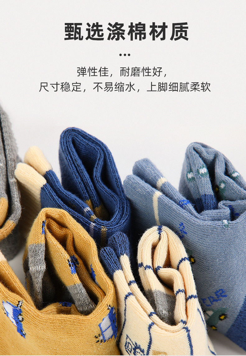 Zhuji 어린이 양말 중간 튜브 양말 만화 기차 소년 양말 뼈없는 고탄력 비 스트레칭 봄과 여름 스포츠 어린이 양말스토어 가기