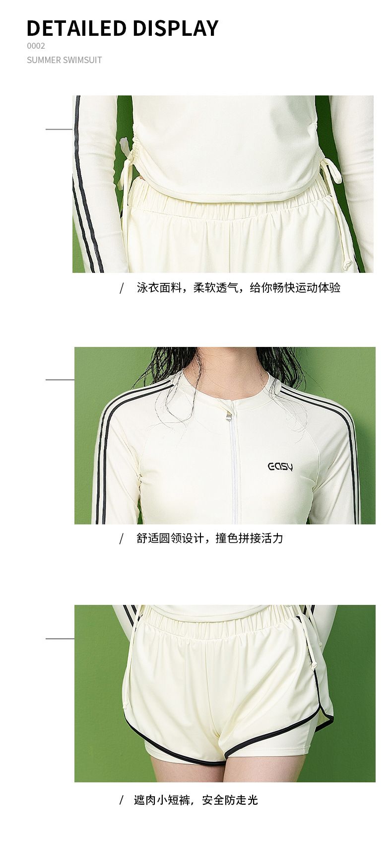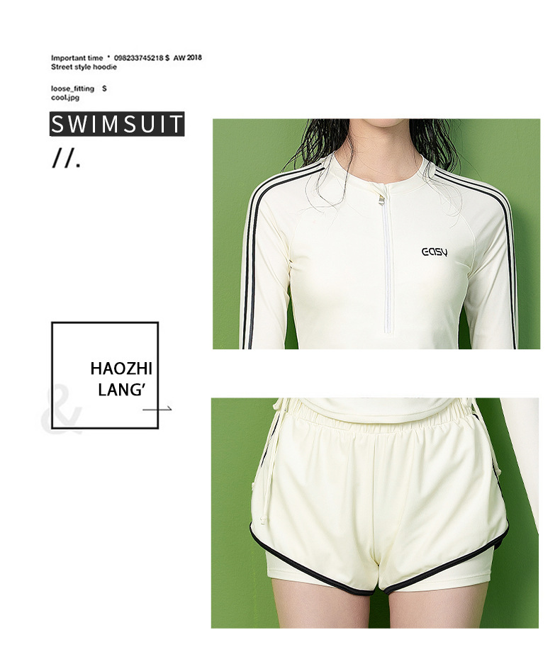 【하오지랑】빅사이즈 긴팔 분리형 수영복 여성 전문 훈련용 여성 수영복 반팔