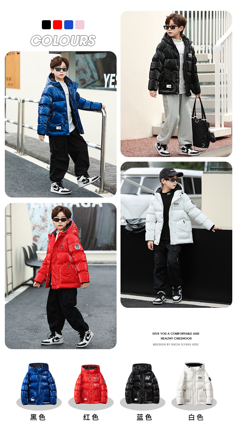 남아 다운 면 패딩 재킷 겨울 의류 새로운 스타일 워시 프리 광택 면 패딩 코트 두꺼운 어린이 면 패딩 코트 따뜻한 코트 트렌디
