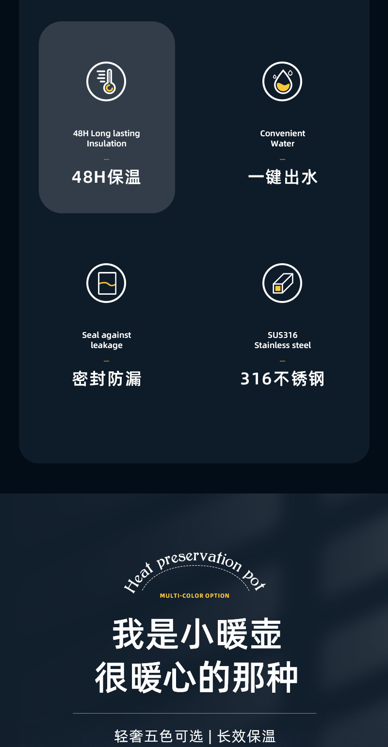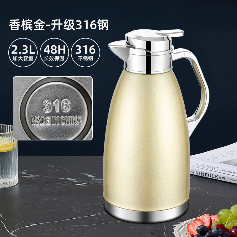 • [3A 항균] 독일 SUS316 스테인레스 스틸, [먼지 반전이 누출되지 않음] 2.3L 샴페인 골드