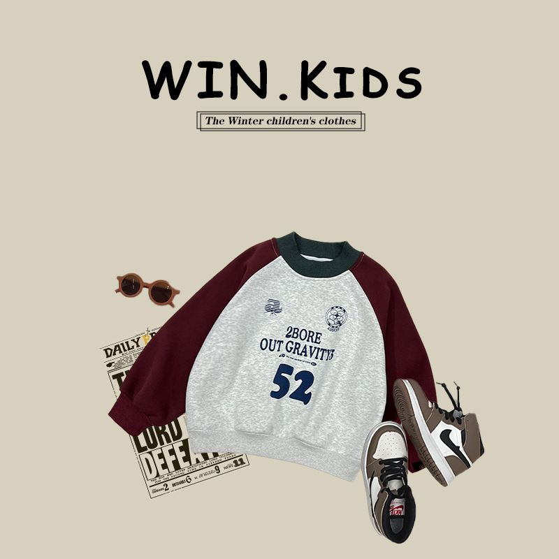 남아용 한국 스타일 배색 아동용 플리스 스웨트셔츠 2025 겨울 신상 아동복 세련된 아기 라운드넥 풀오버 상의