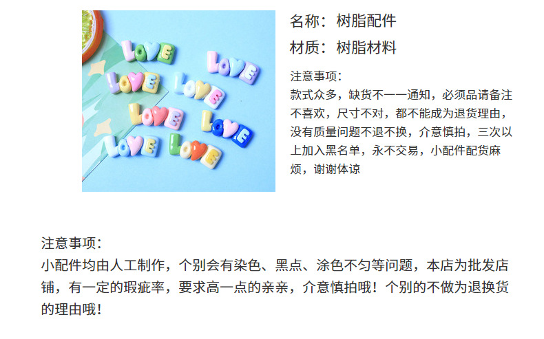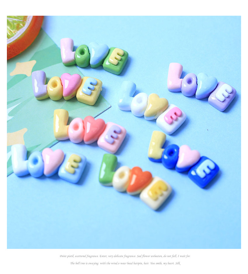 LOVE 브랜드 크림 접착제 DIY 수제 휴대 전화 케이스 헤어 로프 헤어 액세서리 머리 장식 수지 액세서리 도매 냉장고 물 컵