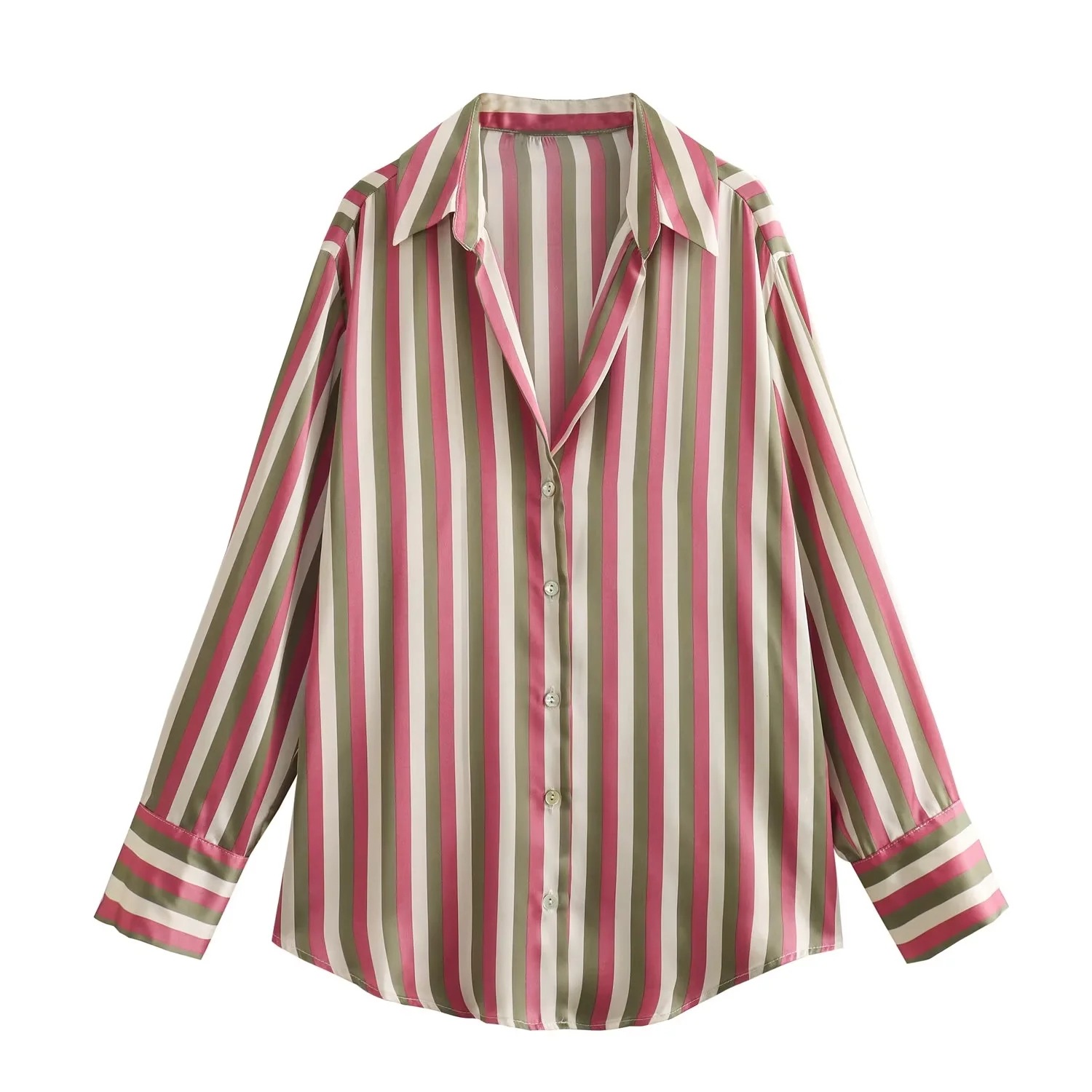 유럽과 미국 국경 2024 여성 도매 멀티 컬러 실크 새틴 질감 드레이프 긴 소매 셔츠 탑 여성 F69895