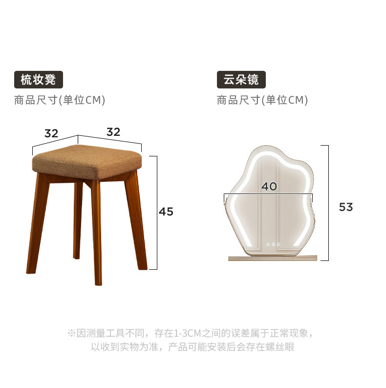 • [더블 테이블] 120cm 테이블*2+120cm 캐비닛+구름거울+원목 스툴+원목 의자, 조립
