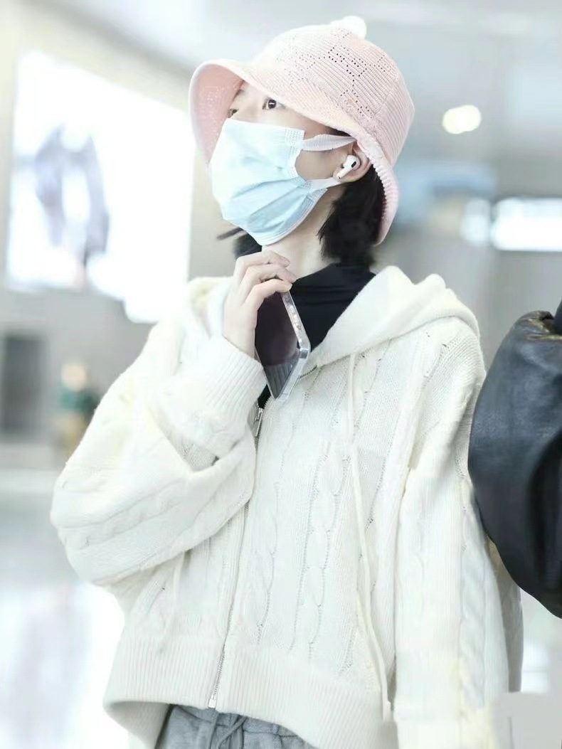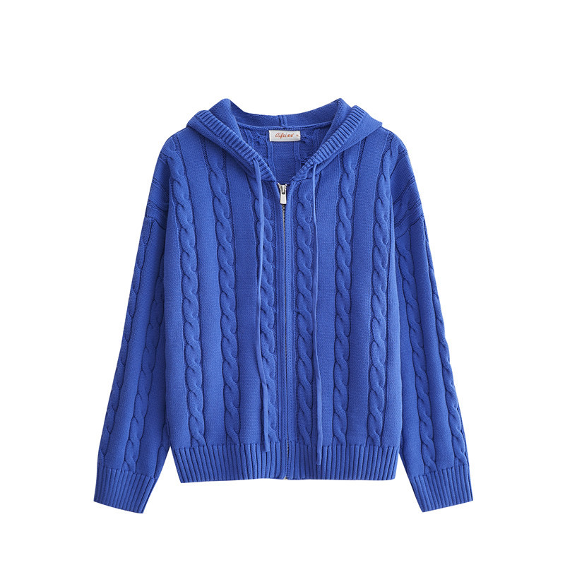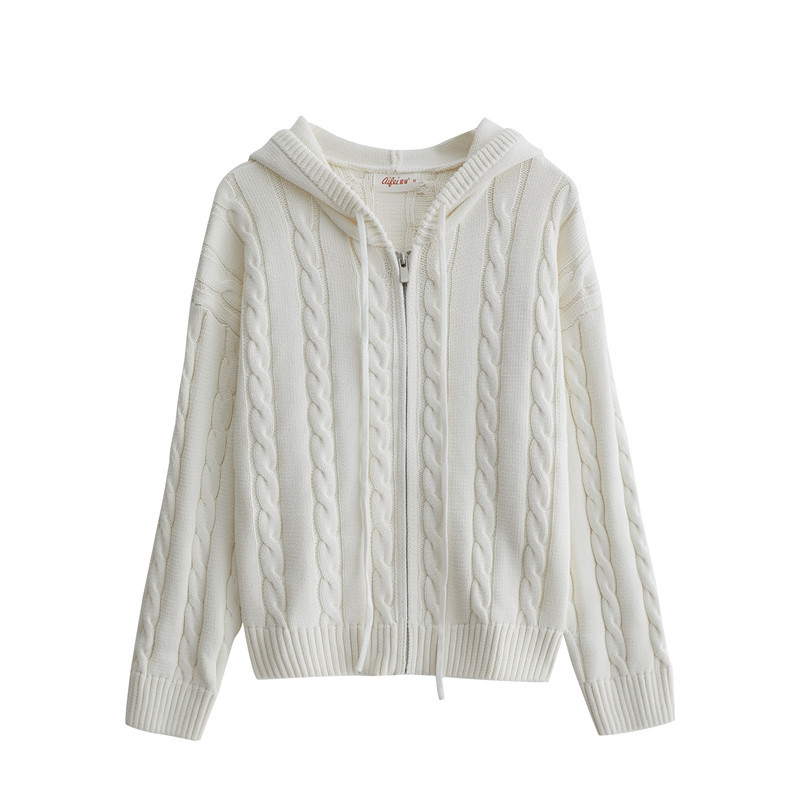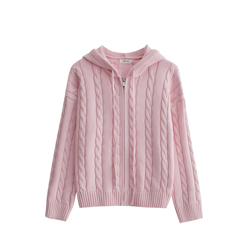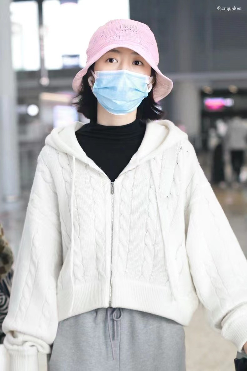 Zhou Yutong 같은 스타일 후드 니트 스웨터 트위스트 카디건 아우터 올 매치 작은 여자 코트 2023 뉴 스웨터스토어 가기