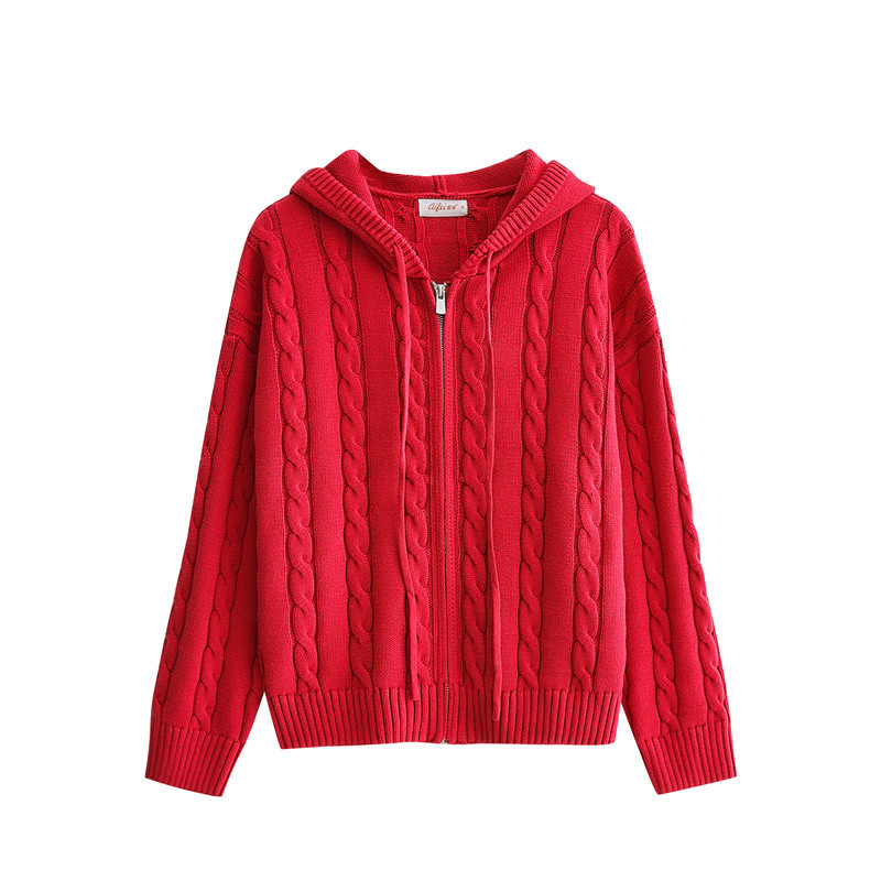 Zhou Yutong 같은 스타일 후드 니트 스웨터 트위스트 카디건 아우터 올 매치 작은 여자 코트 2023 뉴 스웨터