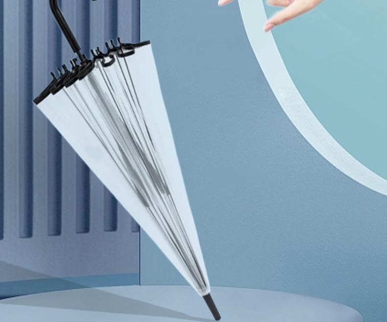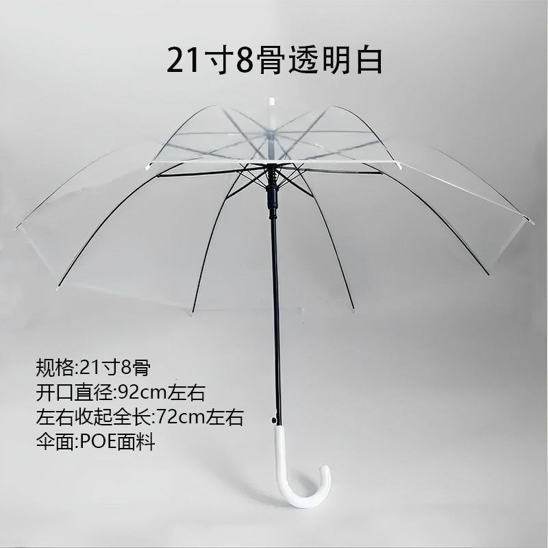 인스 스타일 인터넷 유명인 예술적인 거리 촬영 일본식 소박한 16본 직선형 긴 손잡이 우산 자동 투명 우산 투명 인스스토어 가기
