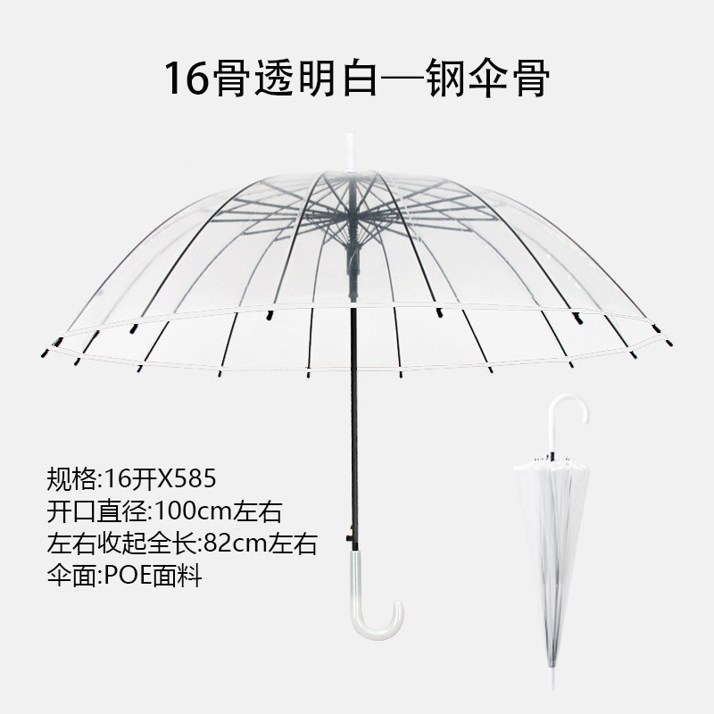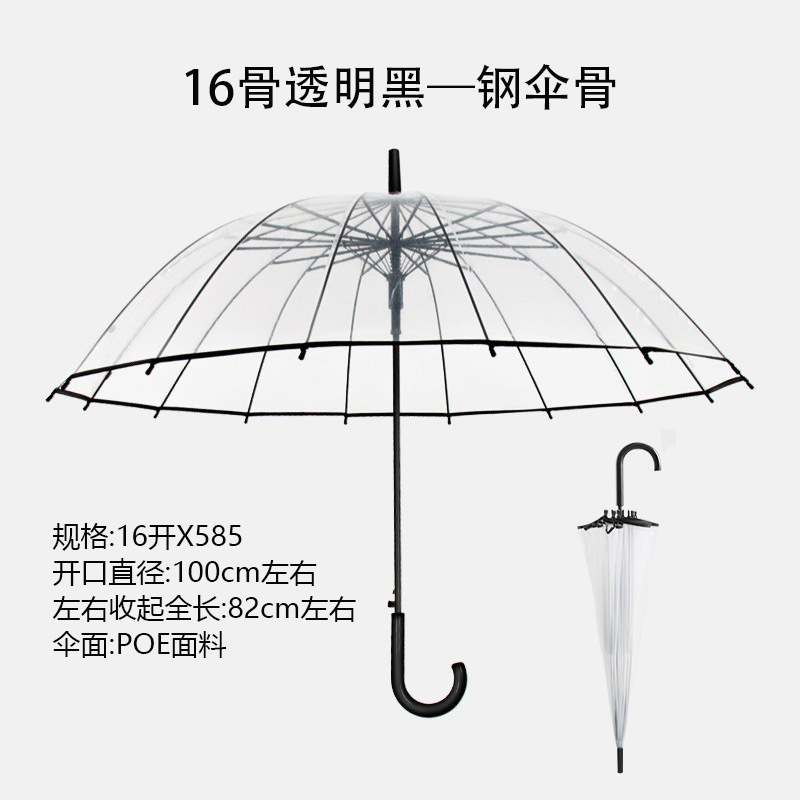 인스 스타일 인터넷 유명인 예술적인 거리 촬영 일본식 소박한 16본 직선형 긴 손잡이 우산 자동 투명 우산 투명 인스