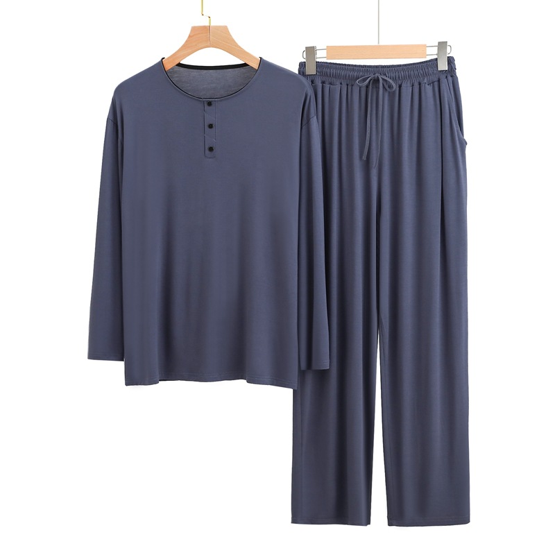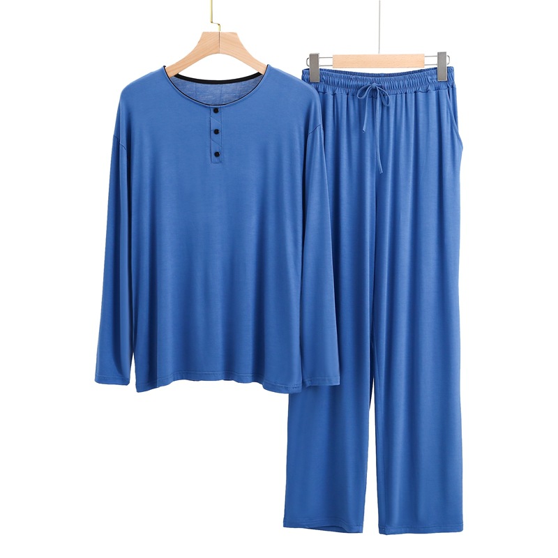 가을과 겨울 세트 남성 캐주얼 홈 의류 새로운 의상 Lanjing 모달 긴 소매 잠옷 2 종 세트스토어 가기