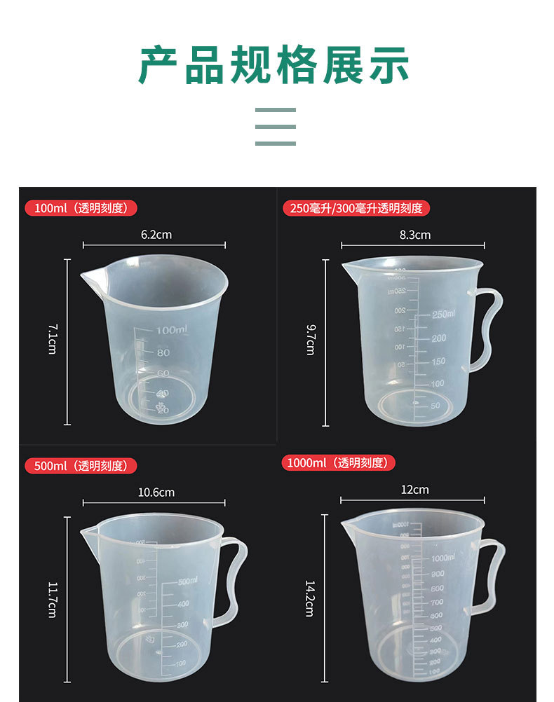 스케일이있는 두꺼운 플라스틱 측정 컵 대용량 100-5000ml 식품 등급 고온 방지 비커 실험실 가정용스토어 가기