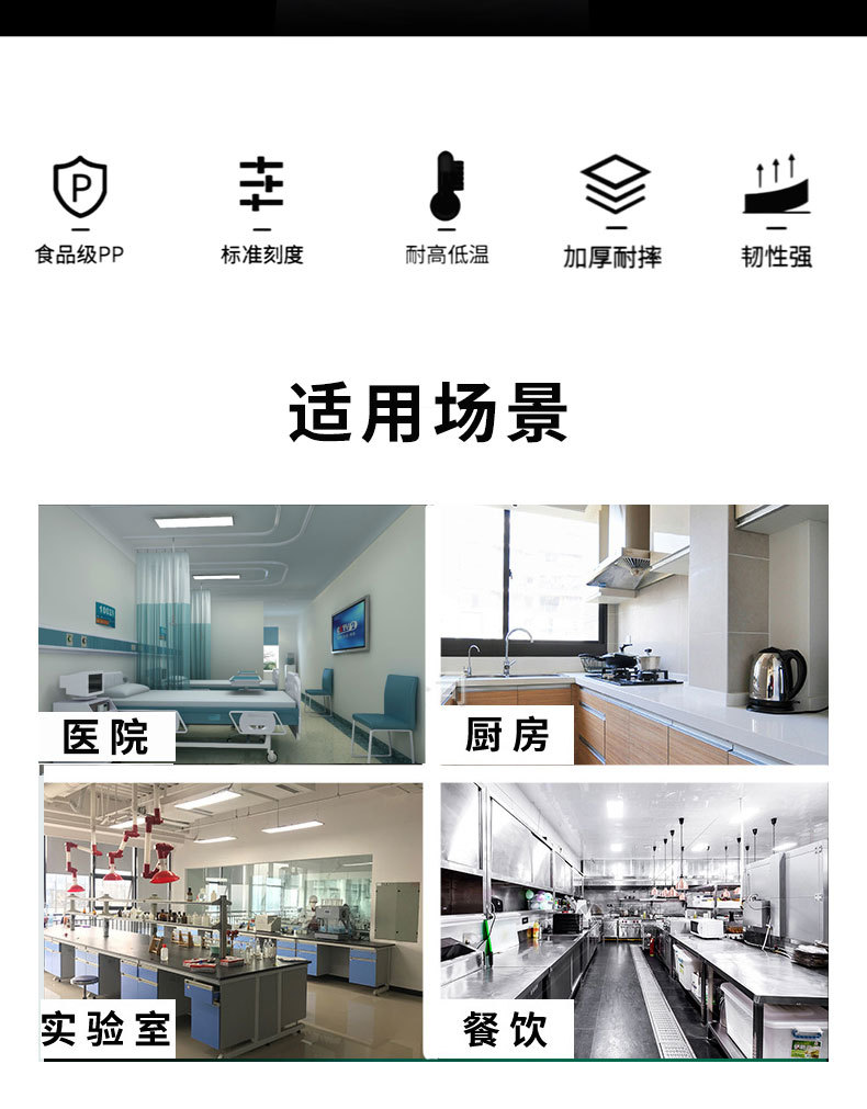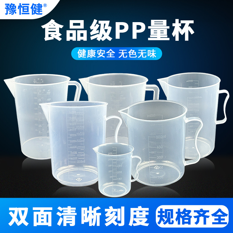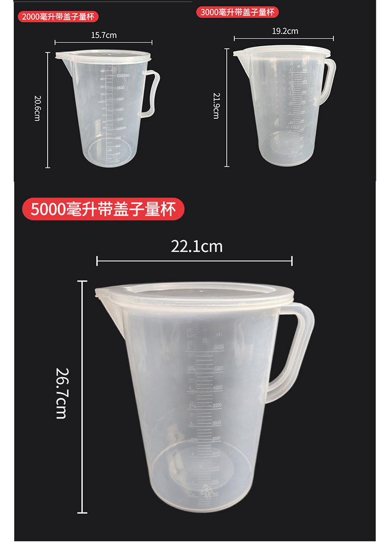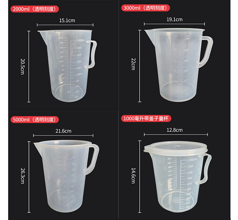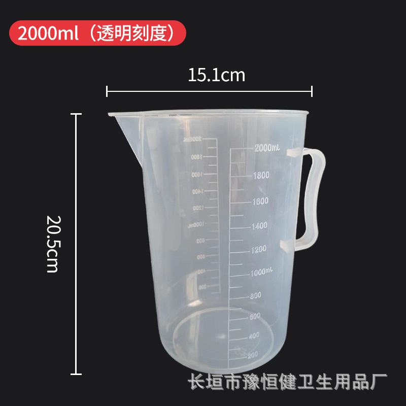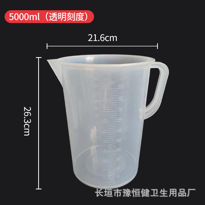 스케일이있는 두꺼운 플라스틱 측정 컵 대용량 100-5000ml 식품 등급 고온 방지 비커 실험실 가정용