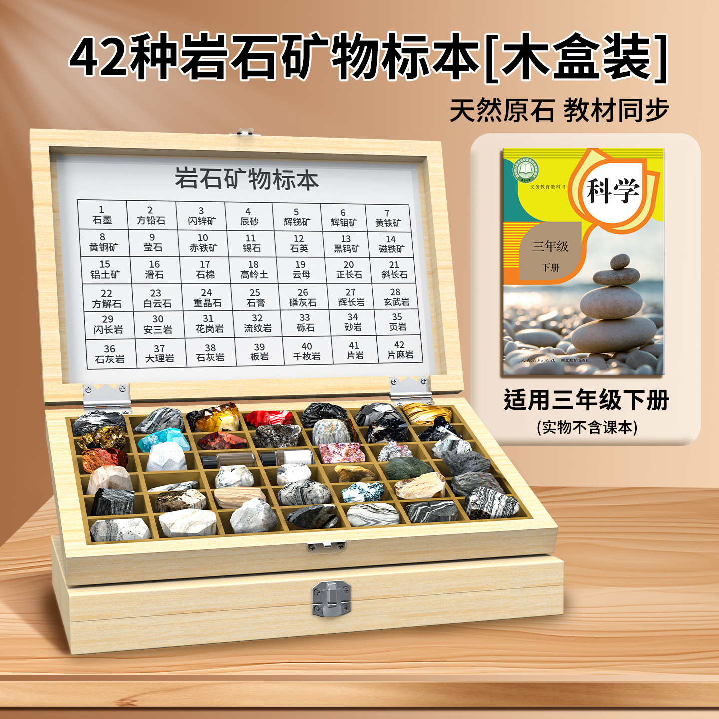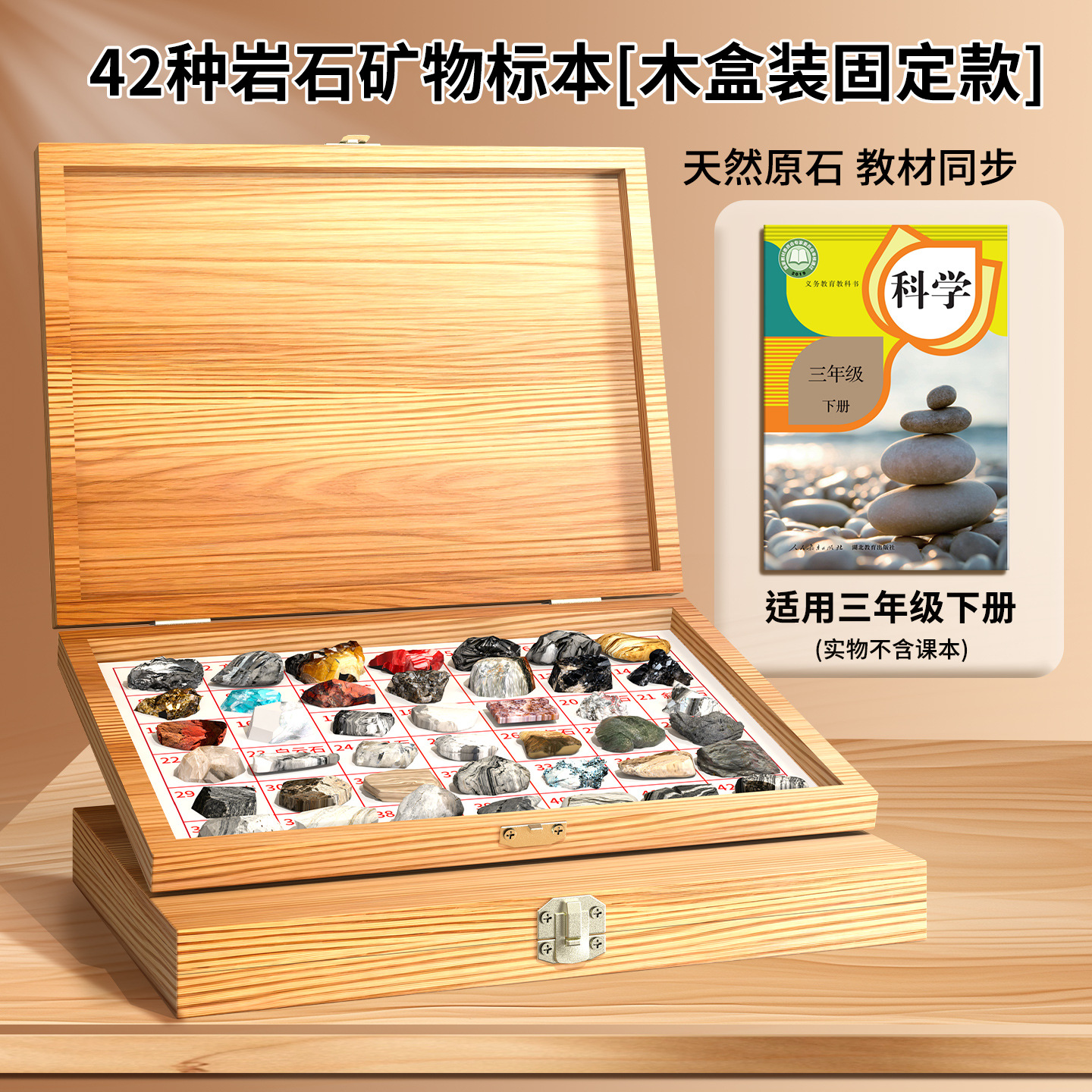 • 42 종류의 암석과 광물 표본 [나무 상자] [가동식]]