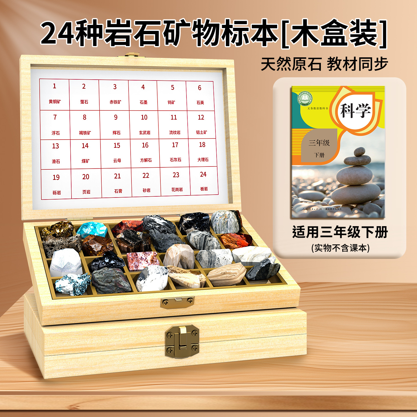 • 24 종류의 암석과 광물 표본 [나무 상자] [가동]]