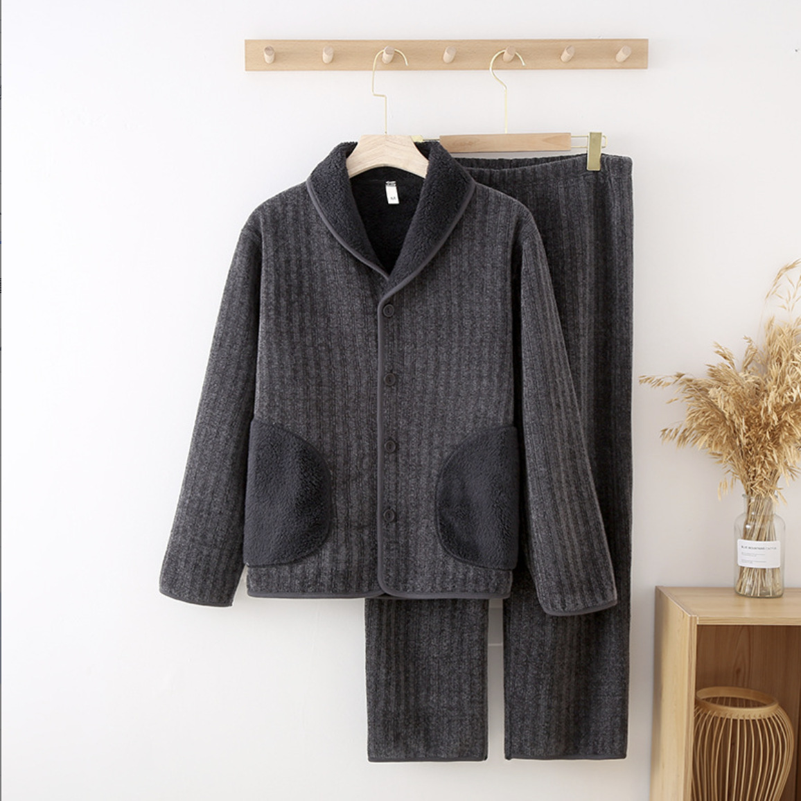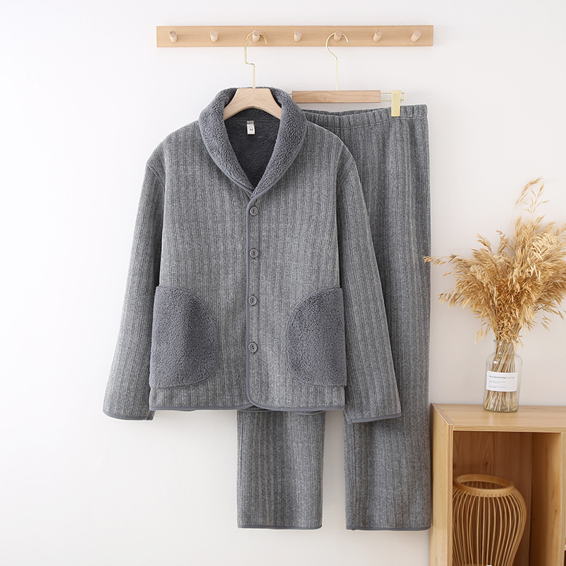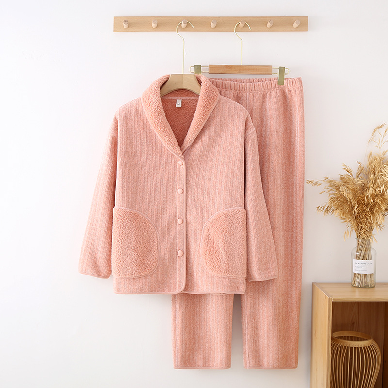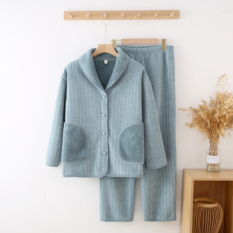 가을과 겨울 새로운 두꺼운 셔닐 실 여성용 따뜻한 잠옷 남성용 긴 소매 겨울은 부부의 집 옷 밖에서 착용 할 수 있습니다 세트