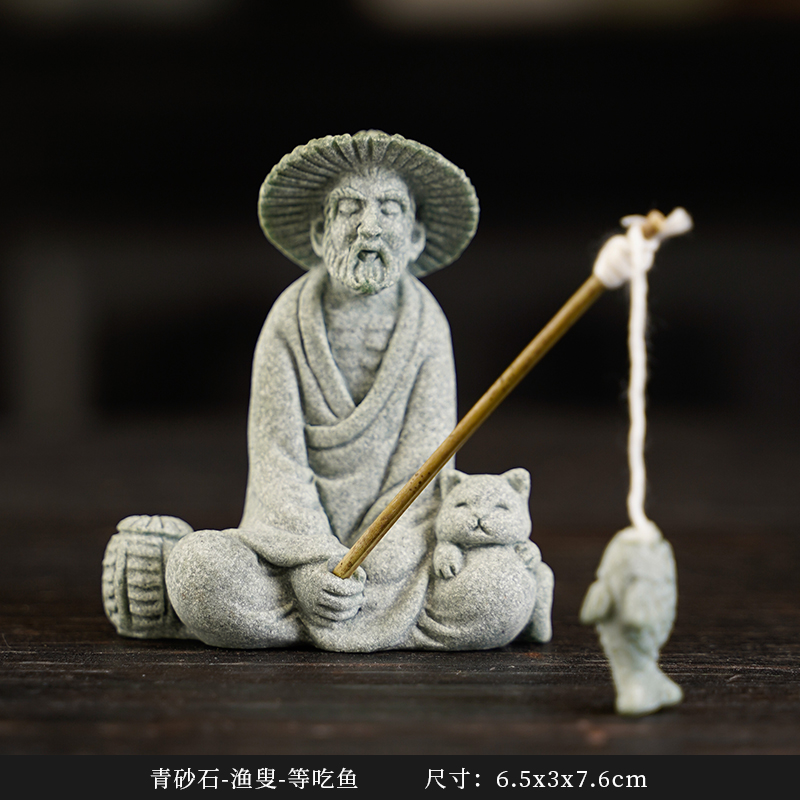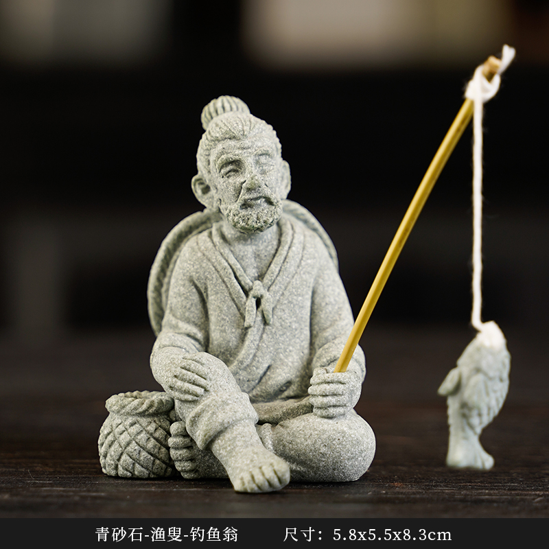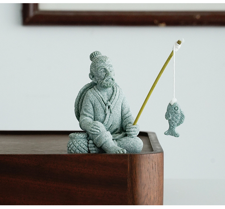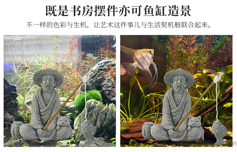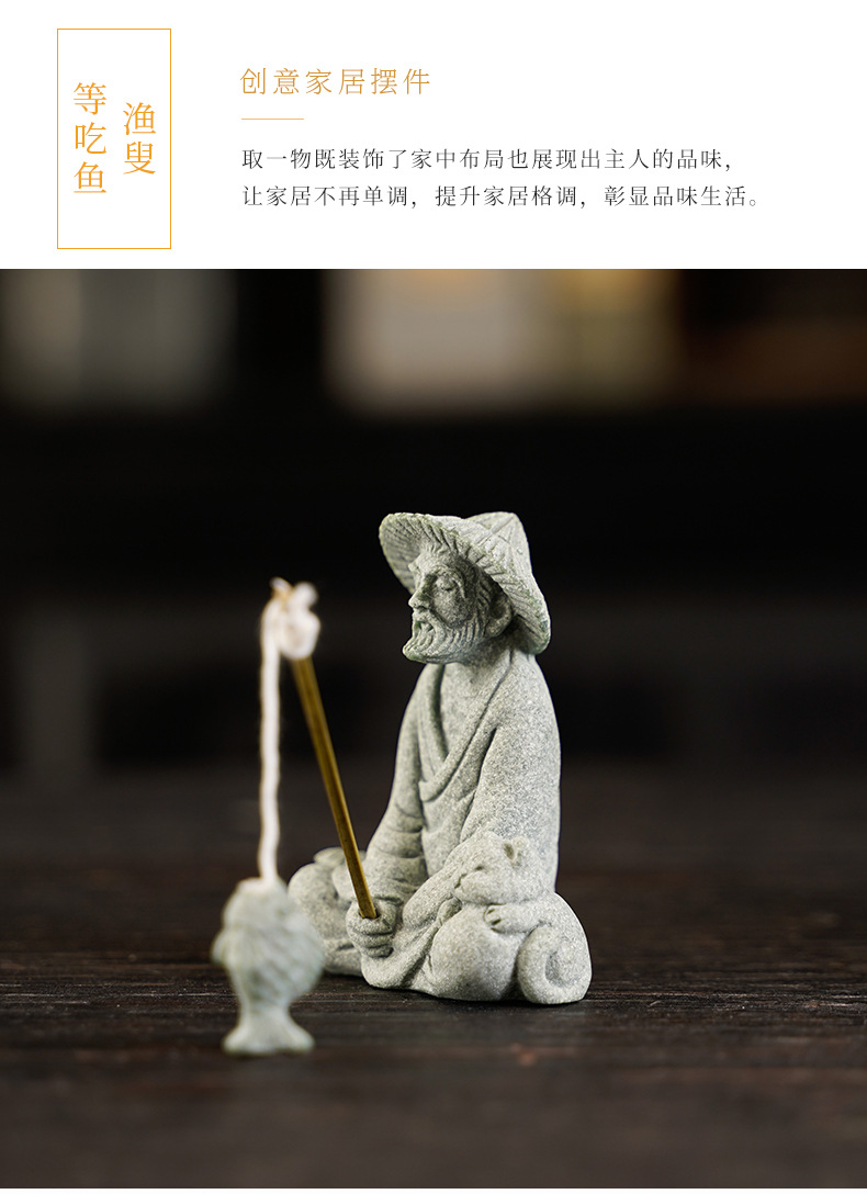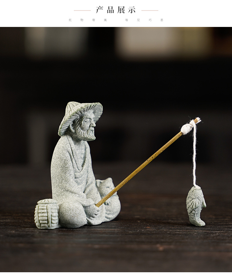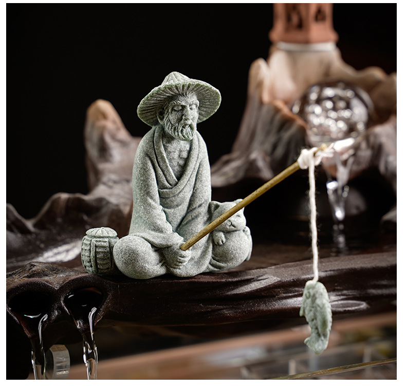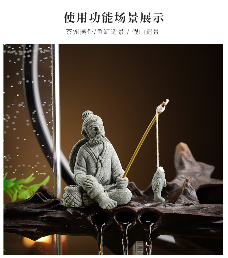 창조적 인 낚시 웡 차 애완 동물 장식품 중국 선 노인 낚시 향 어항 보세 풍경 데스크탑 장식스토어 가기