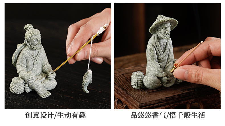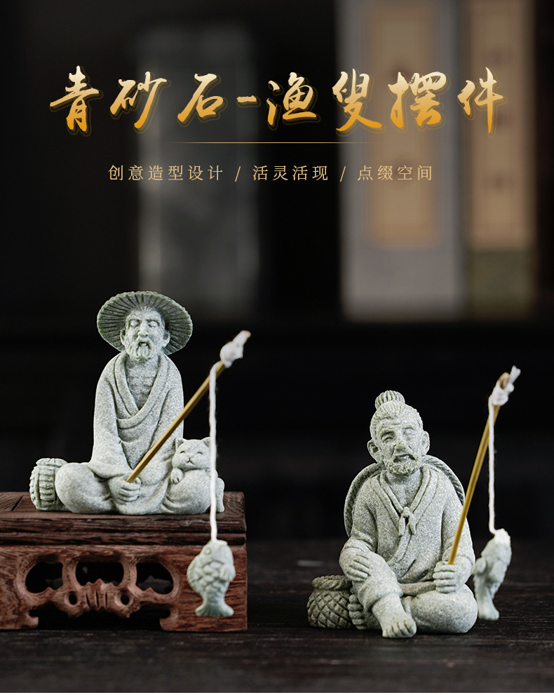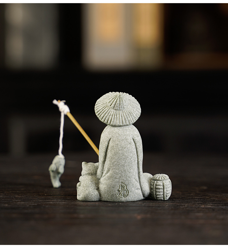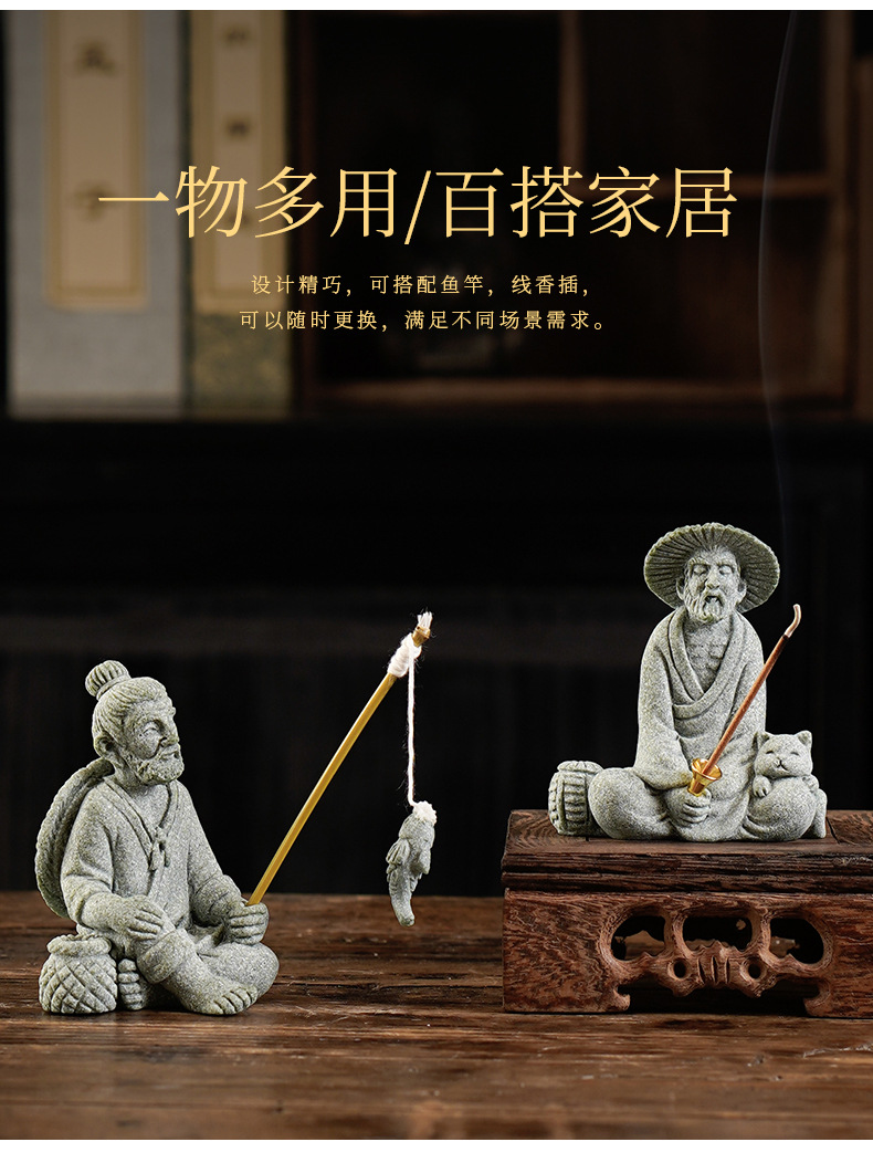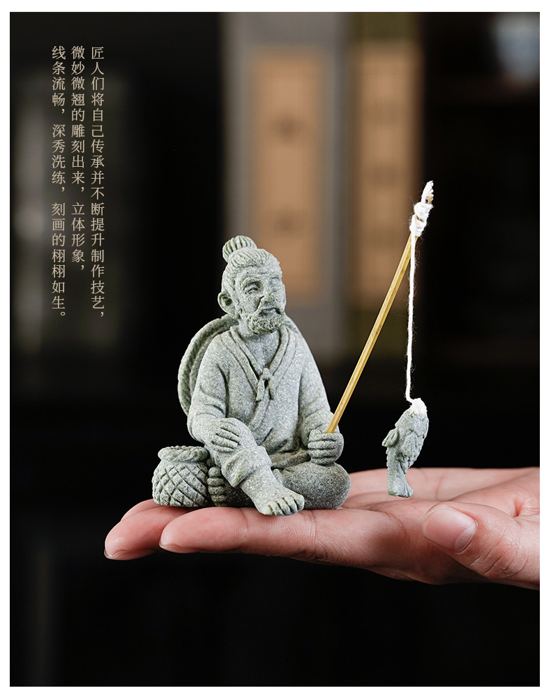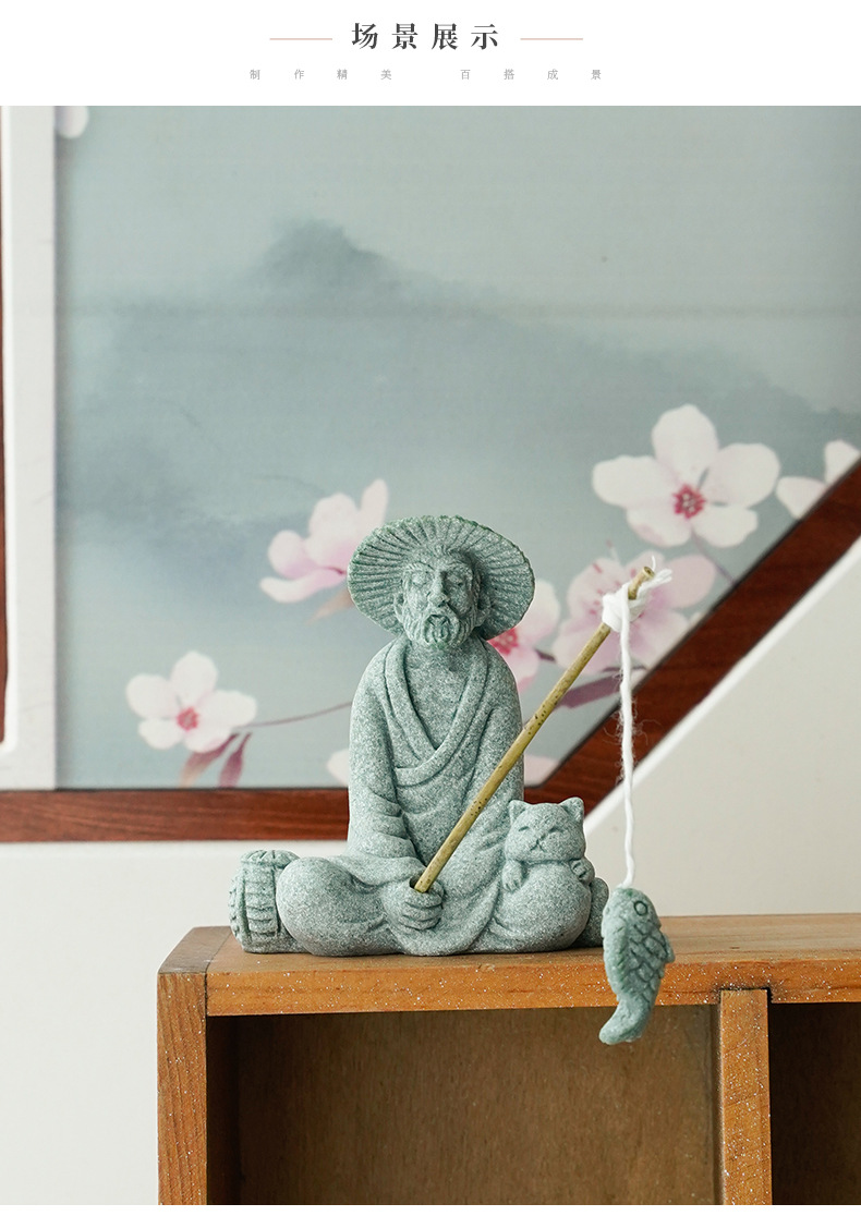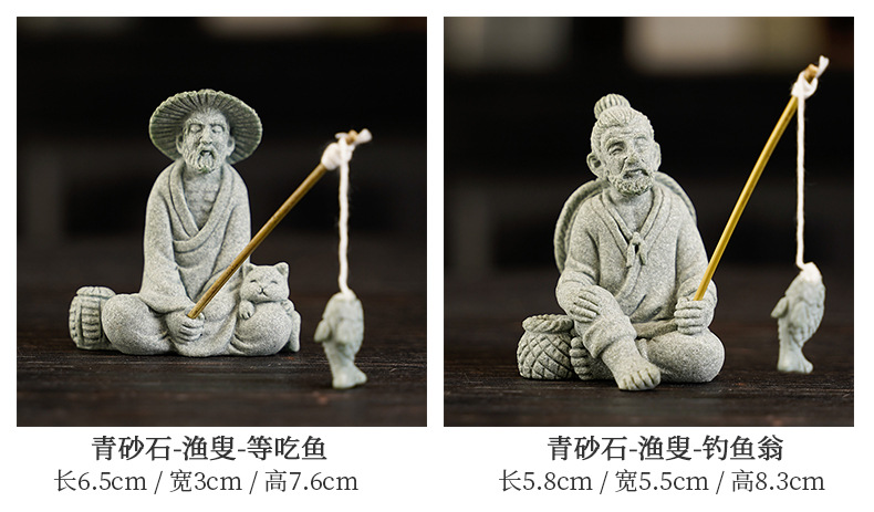 창조적 인 낚시 웡 차 애완 동물 장식품 중국 선 노인 낚시 향 어항 보세 풍경 데스크탑 장식스토어 가기
