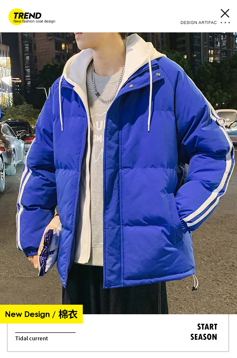 NASA 클라인 블루 페이크 투피스 2023 새로운 겨울 다운 코튼 패딩 재킷 남성 후드 코튼 패딩 재킷 진장 코튼 패딩 재킷스토어 가기