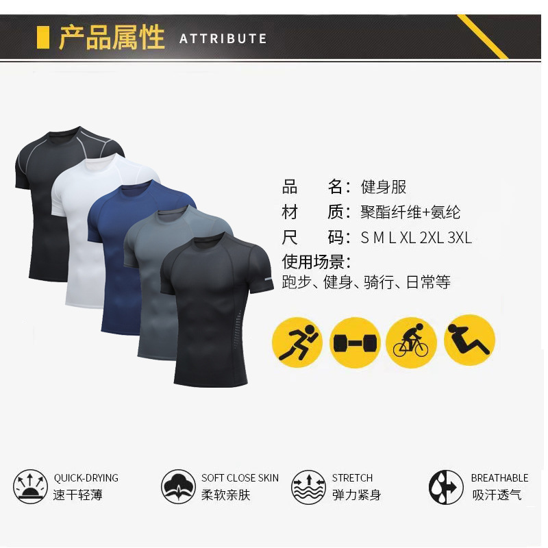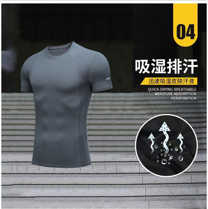 새로운 피트니스 스포츠 수분 흡수 속건 농구 트레이닝 의류 반팔 남성용 고탄성 드라이 러닝 압축 티셔츠스토어 가기