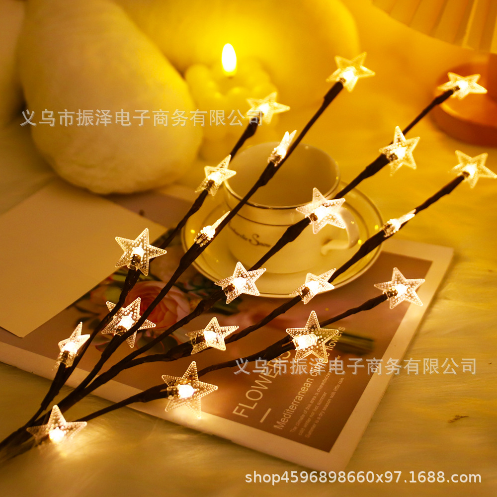 棕色 20头 星星树枝灯 需5号电池2节 电池自备
